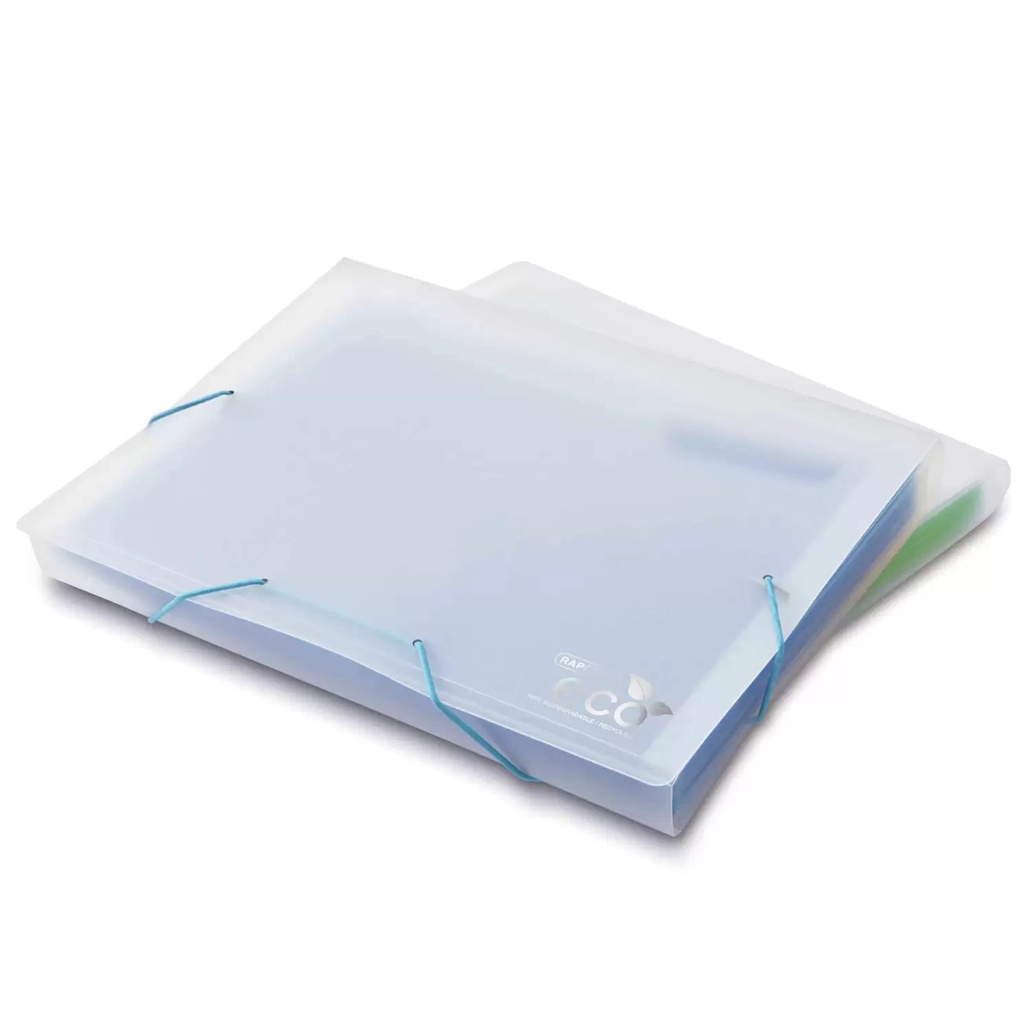 This Eco Expanding File is durable for long life and well-organised document filing. The elastic closures over the corners keep contents secure and easily accessible, whilst the large A4+ size allows for storing envelopes and folders as well as A4 sheets. Comes supplied with multiple coloured index tabs to allow each compartment in this Expanding File to be labelled. Made from 100% biodegradable polypropylene sheet material which is 100% recyclable and contains some recycled materials. During the biodegradation process, the products do not emit methane or any chemicals harmful to the soil.