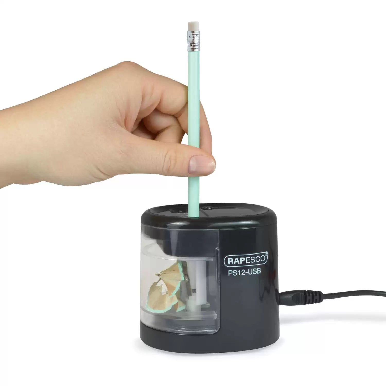 Elevate your office experience with the Electric Pencil Sharpener. Powered by USB, it offers precision sharpening, ensuring smooth and consistent pencil tips in seconds. Its sleek design makes it a stylish and practical addition to any workspace. Plus the transparent shavings reservoir allows for easy cleaning. Designed for modern workplaces, it combines precision sharpening with speed and efficiency. The compact and stylish design fits seamlessly on any desk. Save time with this versatile tool.