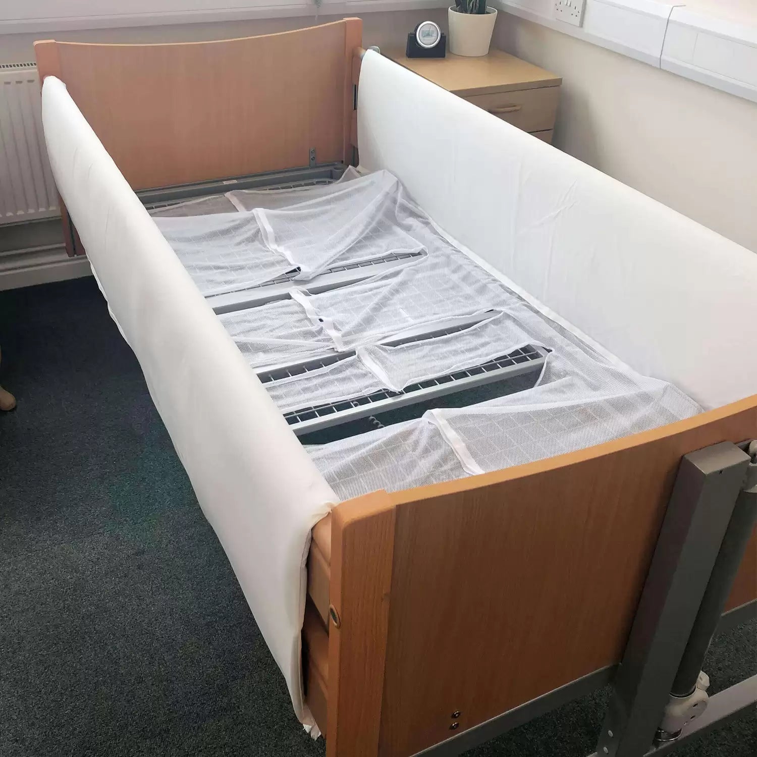 Designed specifically for use in care and residential homes, our Full Length Bed Rail Protectors offer protection and security for your most vulnerable residents. Covered in a padded foam, each rail has a wipe clean and fluid proof surface that is easy to disinfect and secures easily with velcro fittings. Sized appropriately for most standard length beds, they are manufactured to prevent falls or injury for bed bound patients or during the night. An economic and long lasting option that provides peace of mind during the quieter hours of the night.
