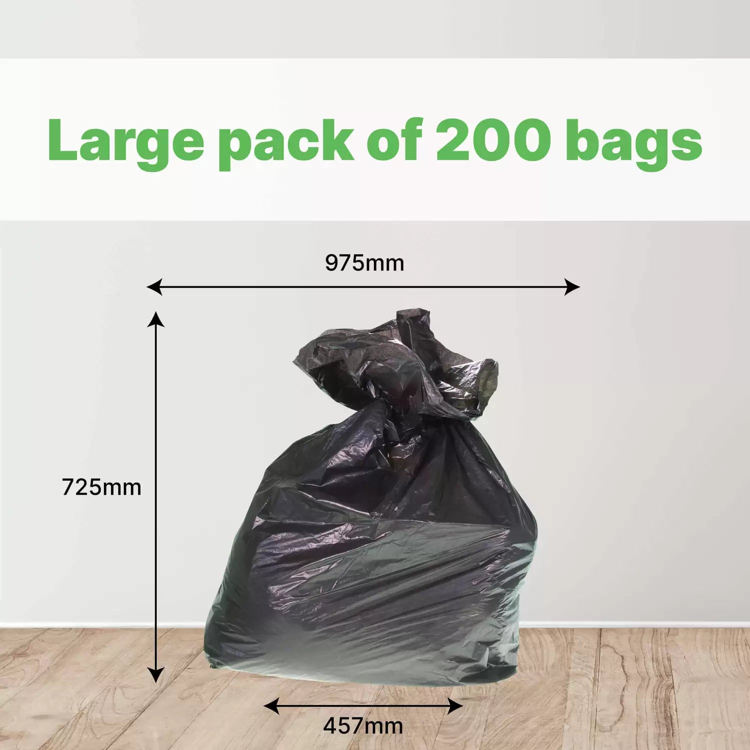 Our Soclean Extra Strong Black Bin Bags are a seriously thick bag for your general waste bin, similar quality to rubble bags that you might use in the garden. This large pack of 200 black bags cost considerably more than our Everyday option, however the quality is outstanding and these should not split easily holding almost 3x the weight.