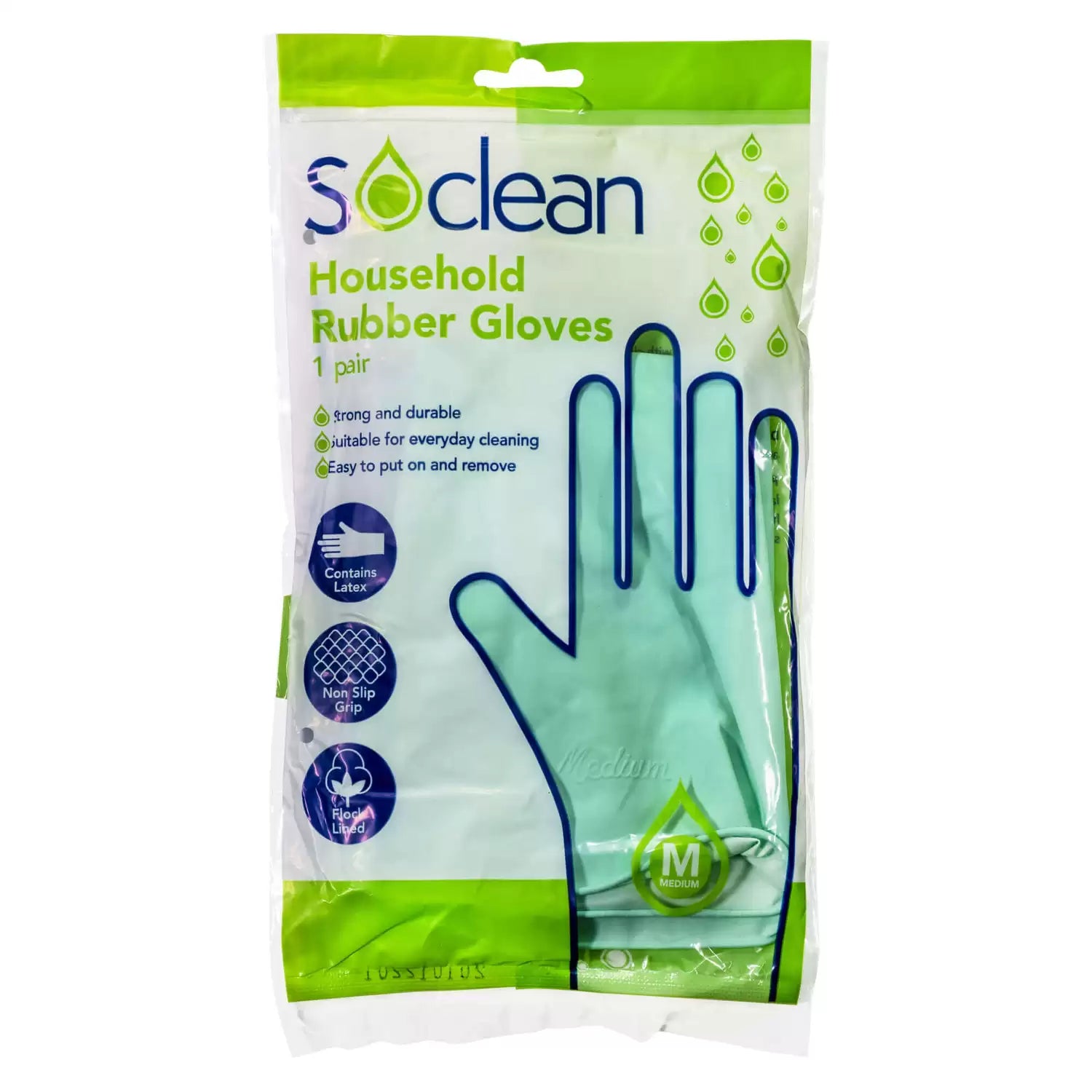 These Household Rubber Gloves Green from Soclean are strong, durable and suitable for everyday cleaning tasks. The gloves are easy to put on, boasting a flock lining and a no slip grip ideal for holding wet dishes or wiping down bathrooms and kitchens.