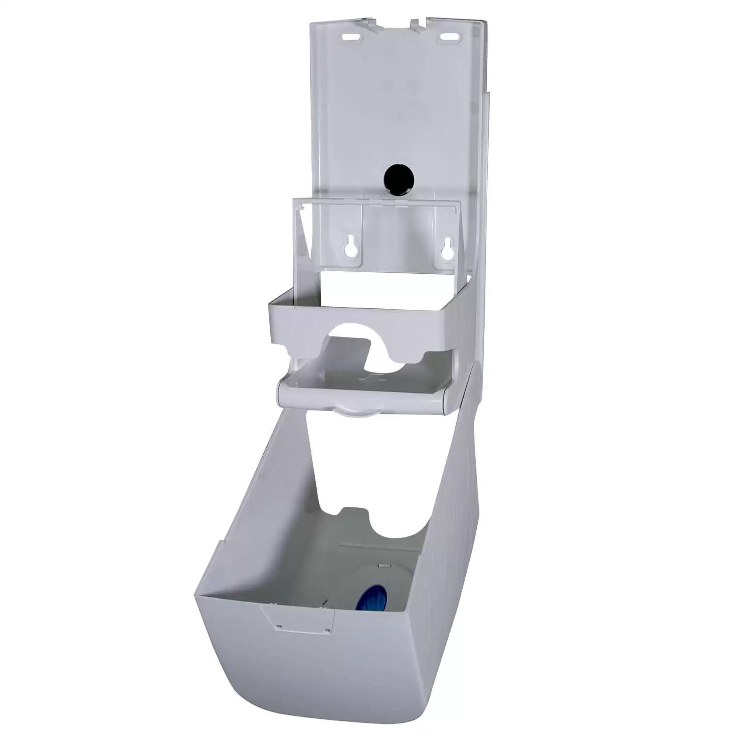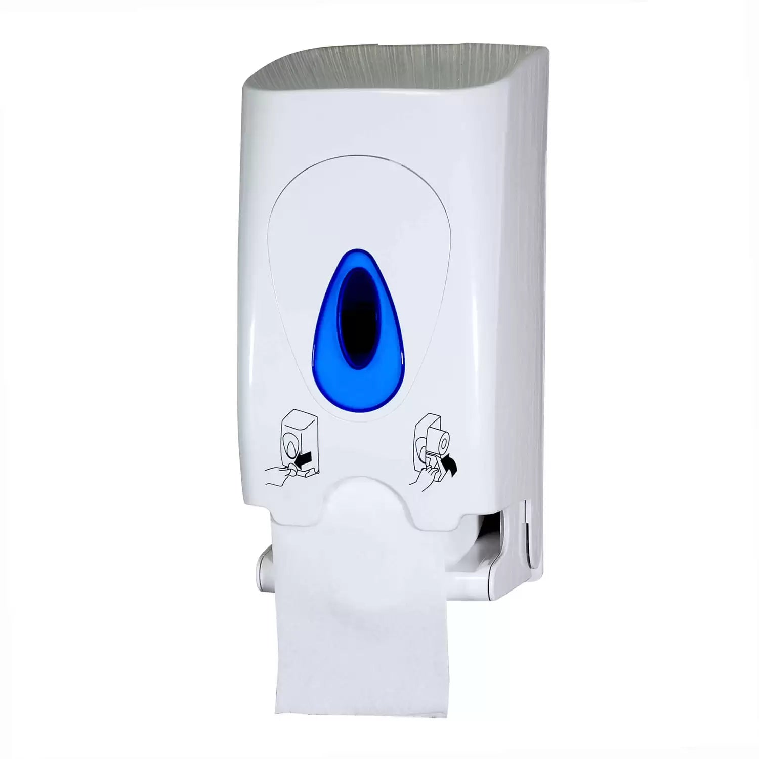 Significantly reduce the need for replenishment in your washroom with this Twin Toilet Roll Dispenser. Designed in-house, this unit has been constructed from a durable plastic that can be quickly wiped clean. A blue display window allows the user to easily identify when replenishments are needed. The entire front casing has a self-locking design that can be accessed with a universal key - perfect for any environment where lost keys are commonplace. When fully loaded, it can hold 2 toilet rolls at any given time while allowing you to remove the desired length of paper. The compact toilet roll dispenser has a small footprint which is ideal for time-poor washrooms.