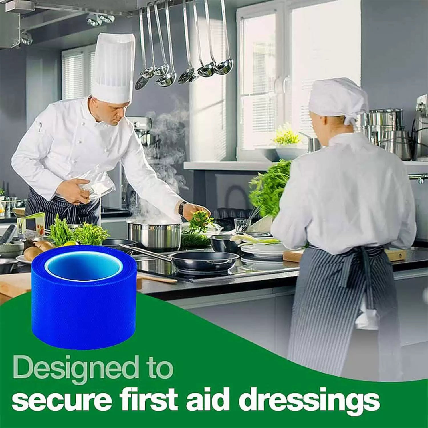 When it comes to protecting wounds, our Washproof Tape in Blue is suitable for use in catering environments. It can be effectively used to hold bandages and dressings in places after medical treatment. The low-allergy adhesive ensures this tape is suited for use on sensitive skin or for those that experience some form of irritation after use. The bright blue design has been chosen to optimise visibility and ensure that, should the dressing fall into food, it will be easily identifiable. For durability and a strong hold, this washproof tape stays in place after cleansing your hands - a perfect contender for busy commercial kitchens.