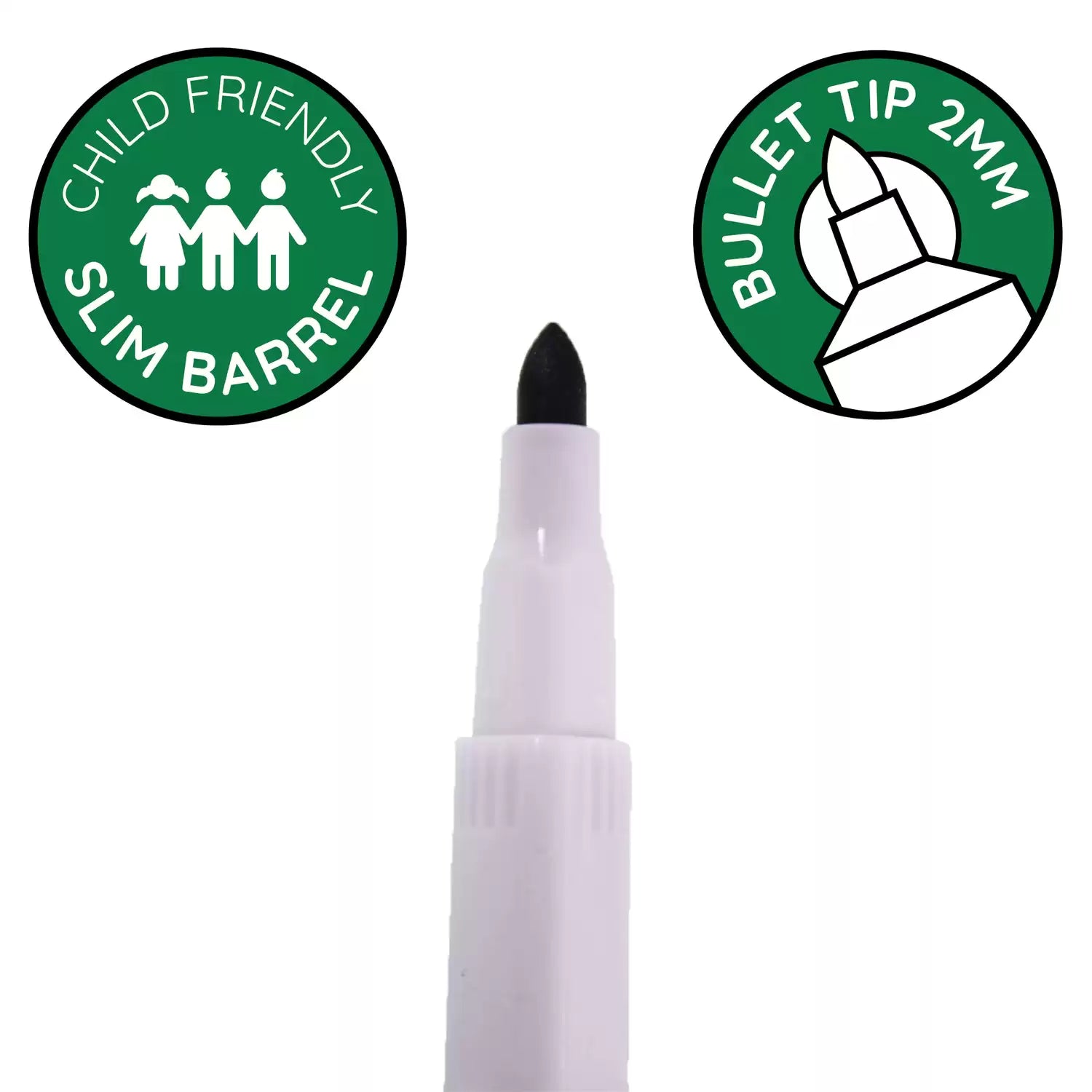 Introducing Writy Slim Drywipe Markers offer outstanding performance. The slim barrel and bold 2mm bullet tip make precision and control effortless, while the triangular comfort grip ensures a fatigue-free writing experience. Ventilated caps ensure safety and longevity, and these markers are child-friendly, providing worry-free usage. Additionally, they conform to BS 7272 standards, giving you peace of mind in terms of quality and safety.