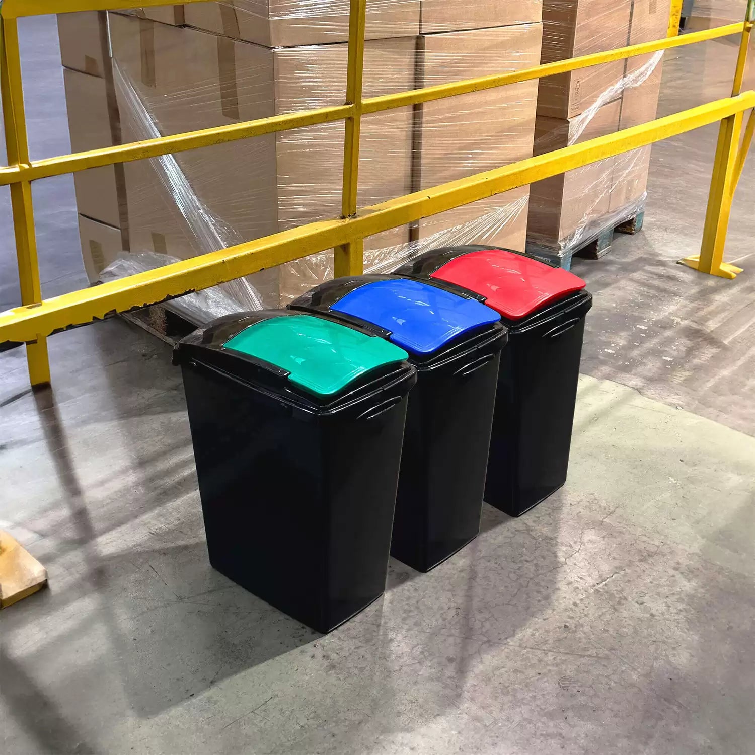 - Colour-coded lift-top lids for sorting recyclables