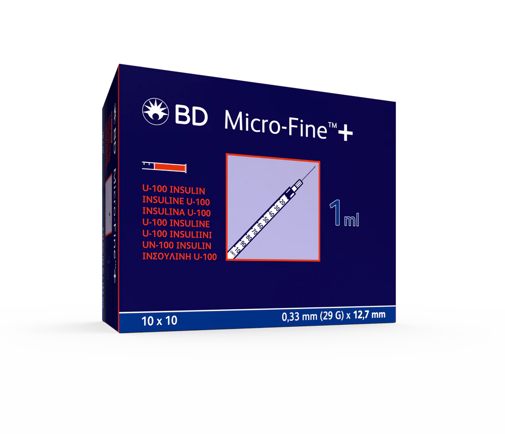 BD Micro Fine+ 1ml Insulin Syringe & Needle 29g x 12.7mm x 100