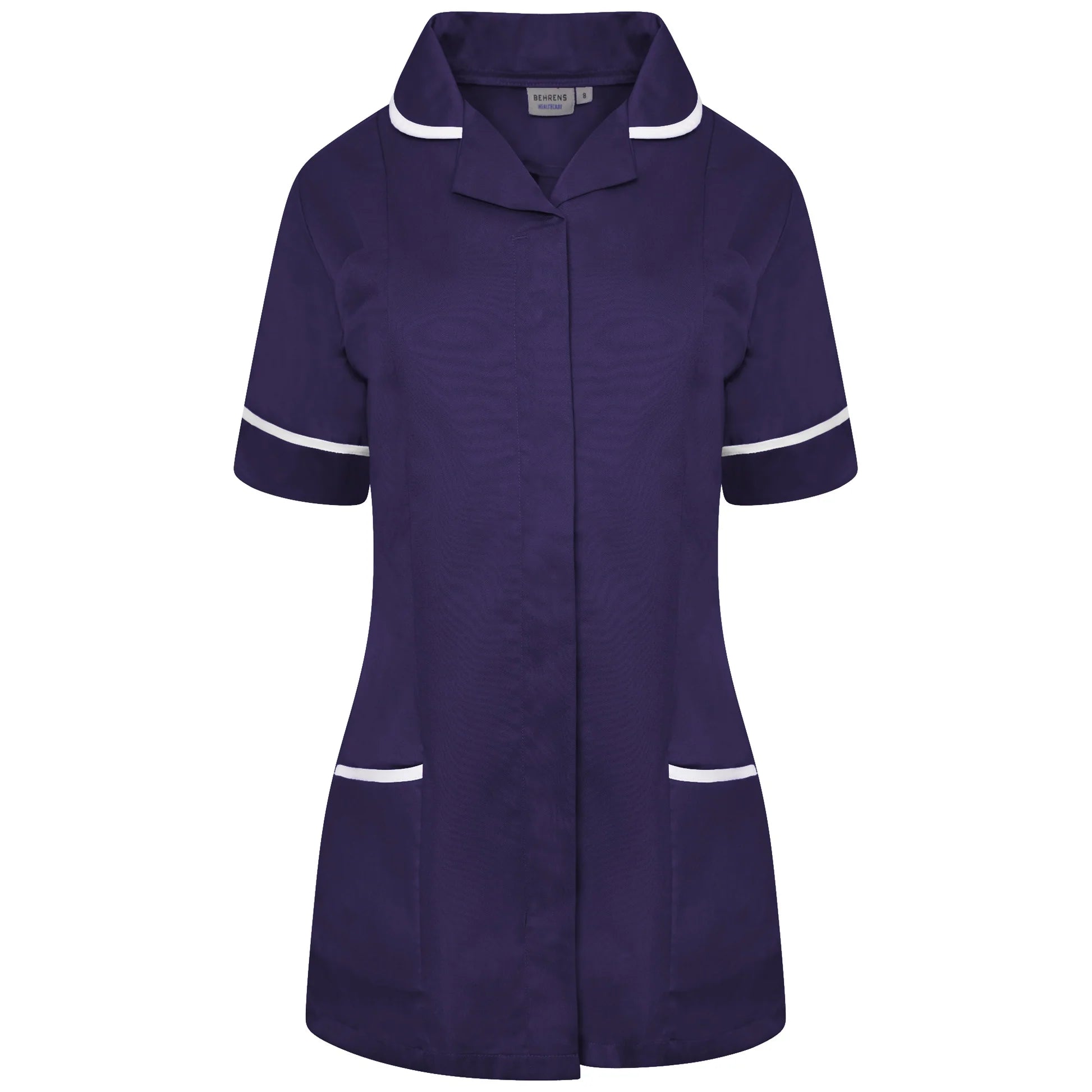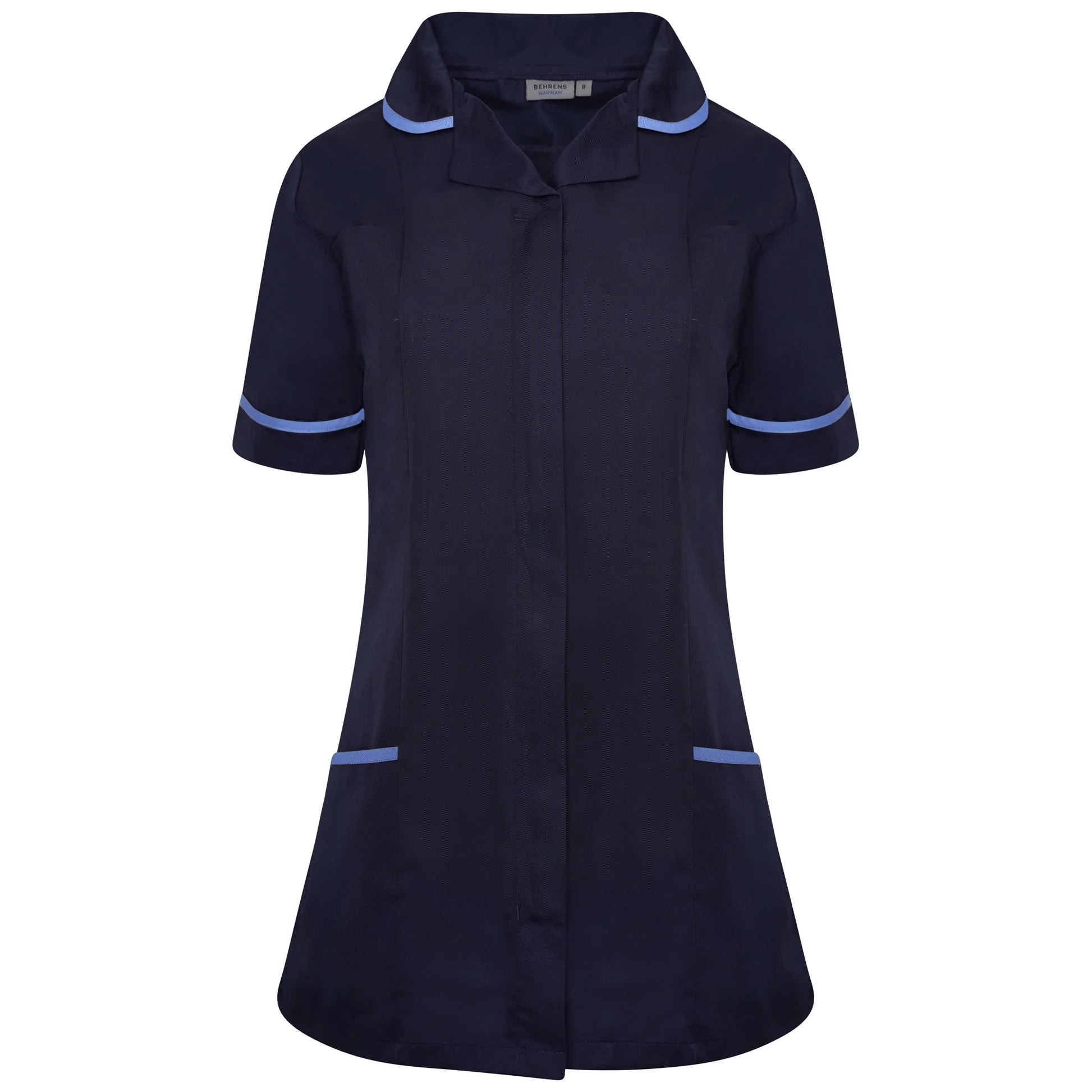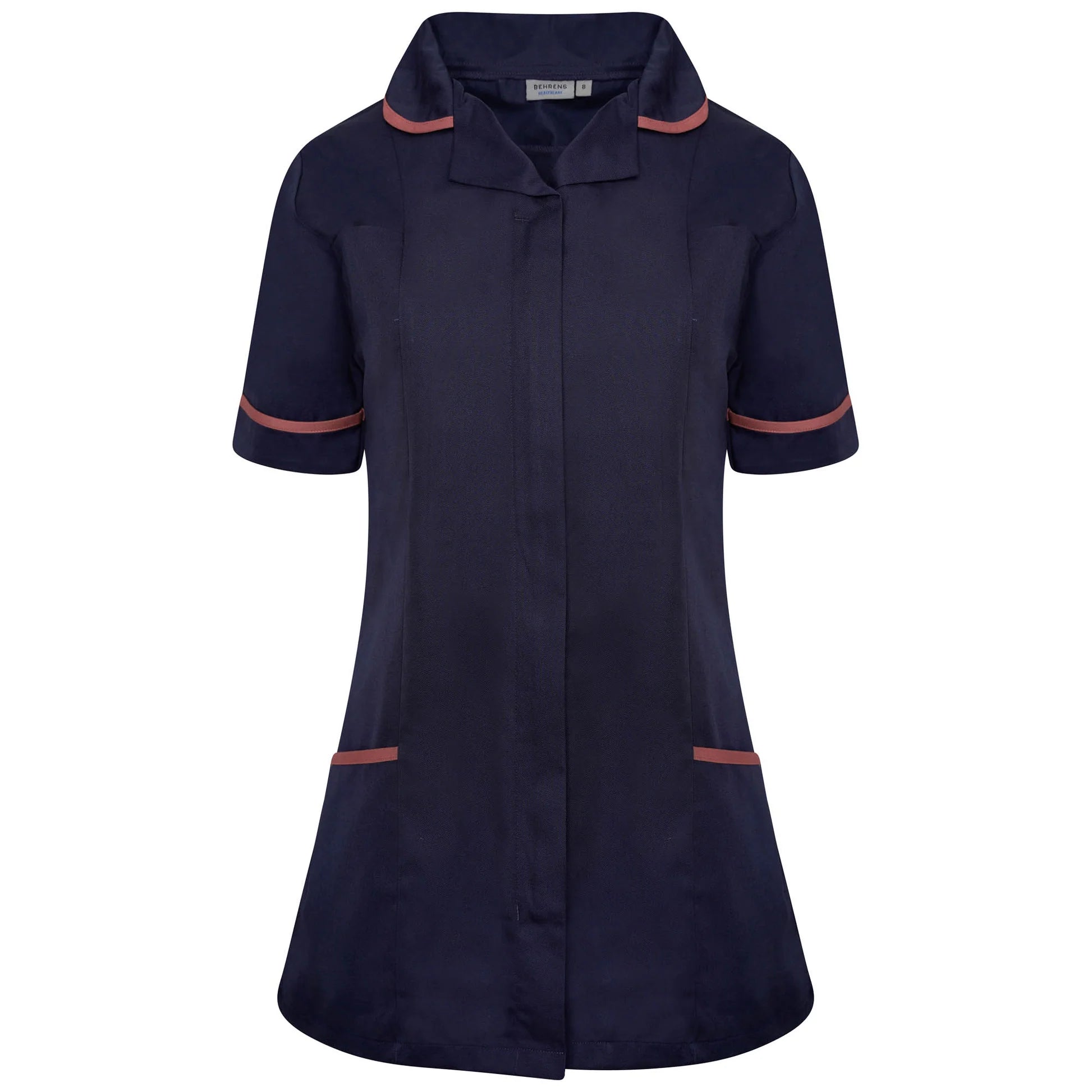 A classic Behrens ladies healthcare tunic, available in an extended range of colours. Designed with a flattering round collar, princess seams, and practical pockets with waterproof lining. Features concealed zip fastening, action back, and side vents for comfort. Trim detail adds a professional finish. Durable and washable at 65°C.