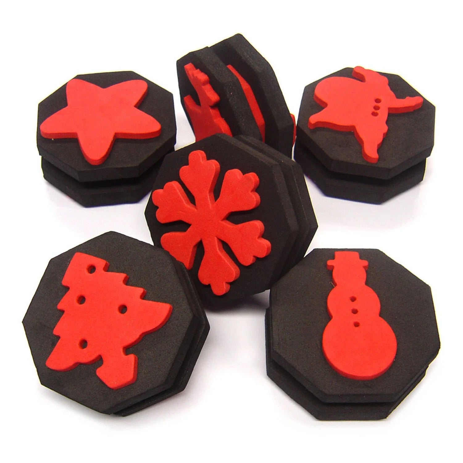 Create a festive celebration in every crafting class with our Christmas Stampers. Their lightweight and strong design make these stamps suited for use in nurseries, schools and even residential homes They provide a limitless range of design options for cards, poster or even just that masterpiece they're working on. A high-quality foam can be used with paints and inks of all kinds - a brilliant way to create masterpieces you'll be proud of. After use, they are easy to wash clean and store along with the rest of your Arts and Crafts stock. In addition and for easy grip, each of these stampers comes with an elasticated adjustable strap that fixes around your hand. Let their imaginations run wild.