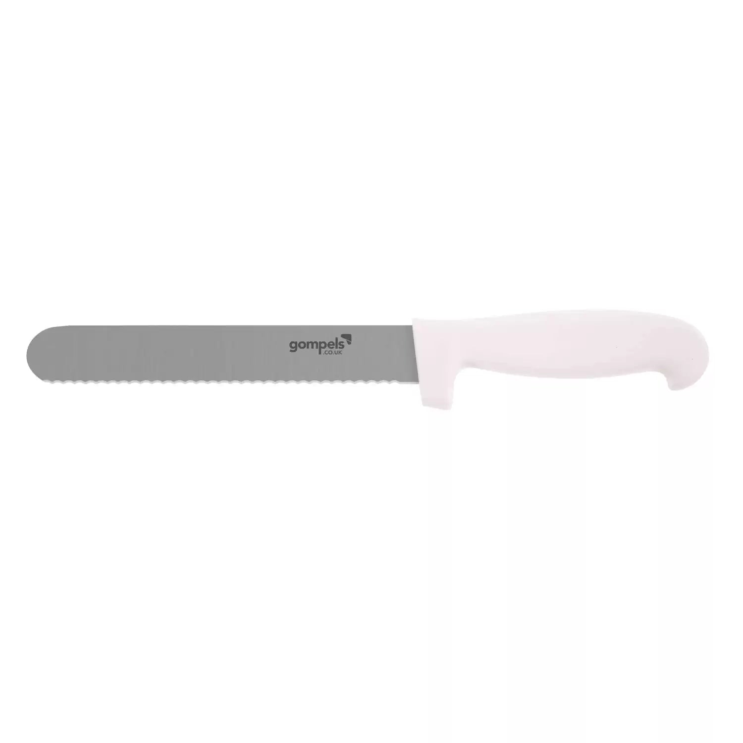 Discover the New COOQUS Bread Knife 8", part of our new COOQUS catering range designed specifically for food prep areas in nurseries and schools, as well as professional and care home kitchens. This high-quality bread-knife features a durable 8-inch stainless steel serrated blade, ensuring clean and precise cuts through any type of loaf. The comfortable, non-slip white handle provides a secure grip, making it safe and easy to use for both staff and kitchen chefs to perfect basic food preparation skills. Ideal for catering areas, it is a reliable addition to any kitchen, promoting efficient and safe food handling practices.
