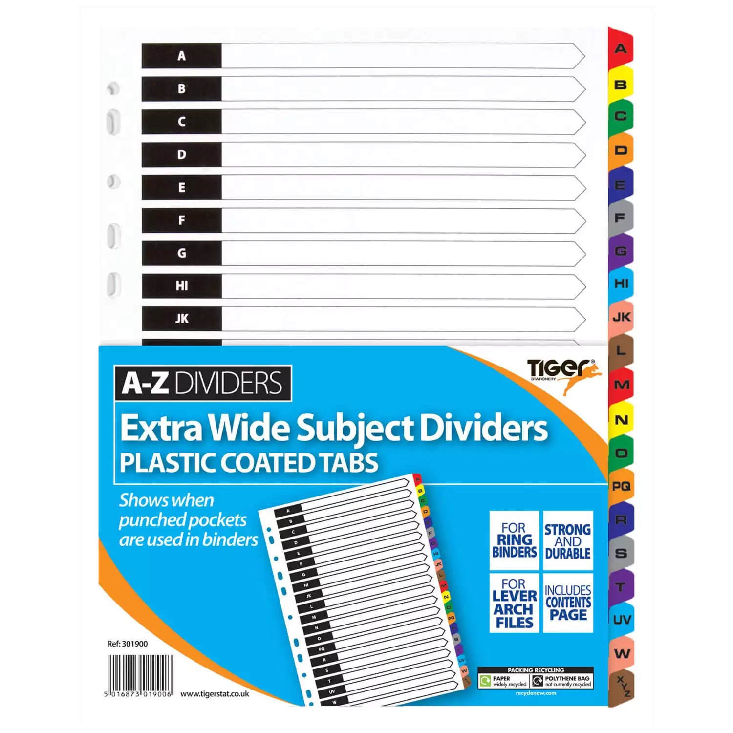 Streamline your filing system with our Extra Wide Subject Dividers A-Z, perfect for businesses that require efficient and organised document management. These index tabs are designed with extra width to accommodate larger files and binders, making it easy to locate and access documents alphabetically. With reinforced tabs from A to Z, these dividers ensure durability and long-lasting use in any busy office environment. Ideal for categorising client files, reports, and other important documents, these dividers enhance both the functionality and professionalism of your filing system.