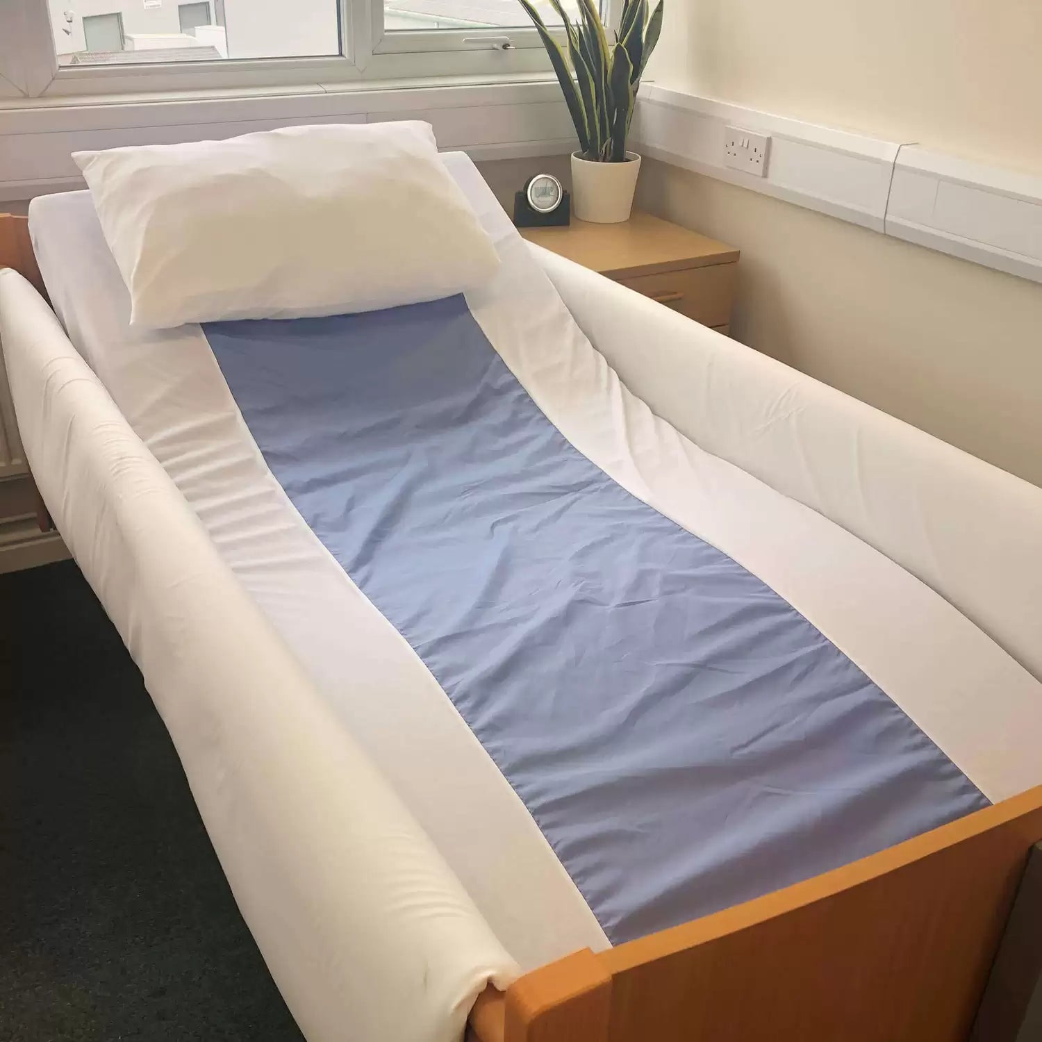 Designed specifically for use in care and residential homes, our Full Length Bed Rail Protectors offer protection and security for your most vulnerable residents. Covered in a padded foam, each rail has a wipe clean and fluid proof surface that is easy to disinfect and secures easily with velcro fittings. Sized appropriately for most standard length beds, they are manufactured to prevent falls or injury for bed bound patients or during the night. An economic and long lasting option that provides peace of mind during the quieter hours of the night.