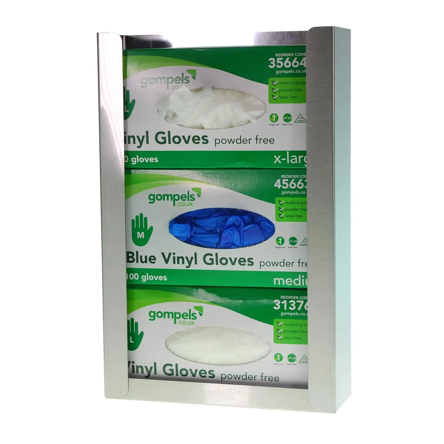 Our Glove Dispenser 3 Box is ideal for busy environments like care homes and nurseries where the use of gloves is high and hygiene procedures need to be adhered to. This premium stainless steel construction is wall mountable for an elevated storage solution that allows for gloves to be easily dispensed from the box one at a time, whilst keeping surfaces free from clutter. Installed in just minutes, this hygienic and functional dispenser has the capacity to hold up to