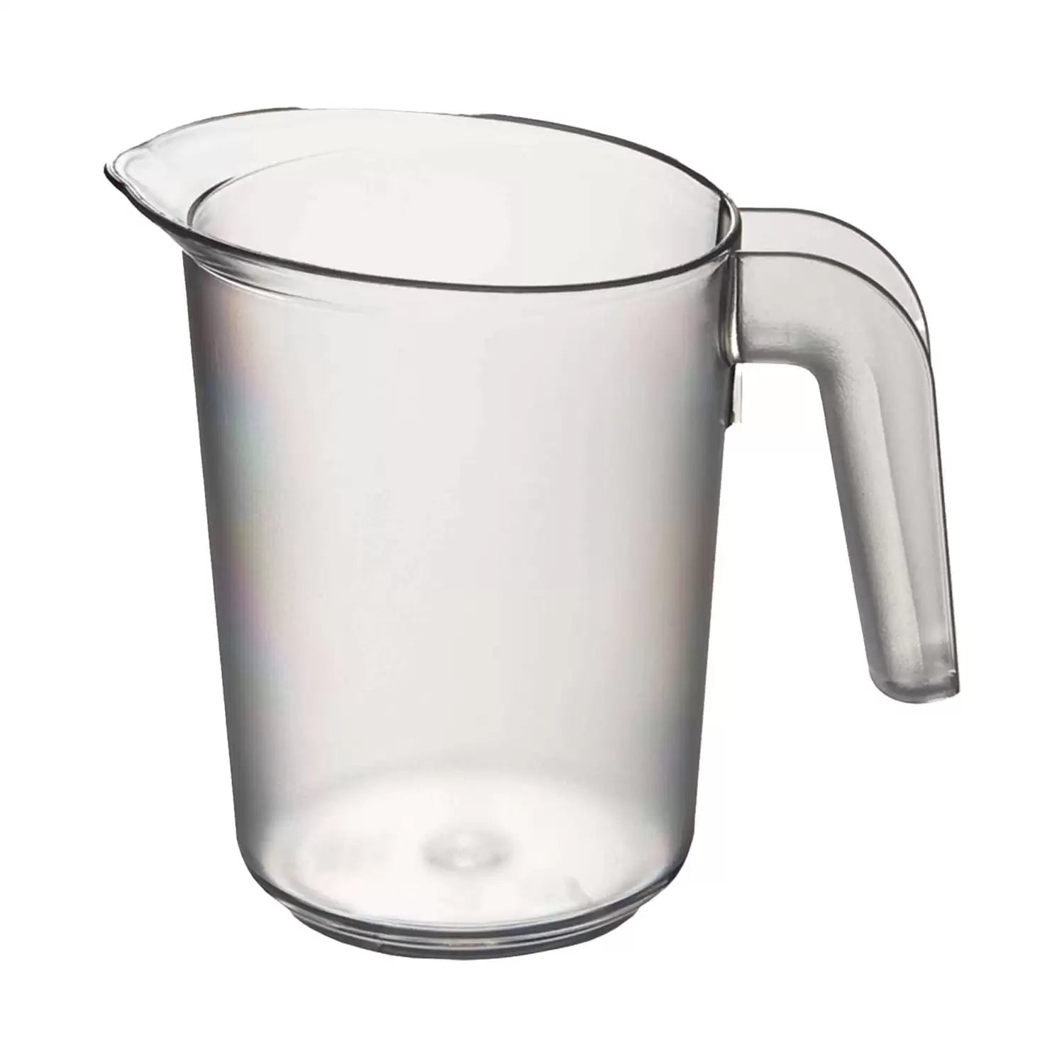 This 500ml frosted translucent Harfield Polycarbonate Clear Jug is virtually unbreakable and perfect for serving drinks. The handle has been ergonomically designed for easy two way grip and there is a thumb indentation for extra stability when pouring. Each jug is stackable for easy storage. They are perfect for indoor or outdoor use and will not shatter or splinter when dropped.