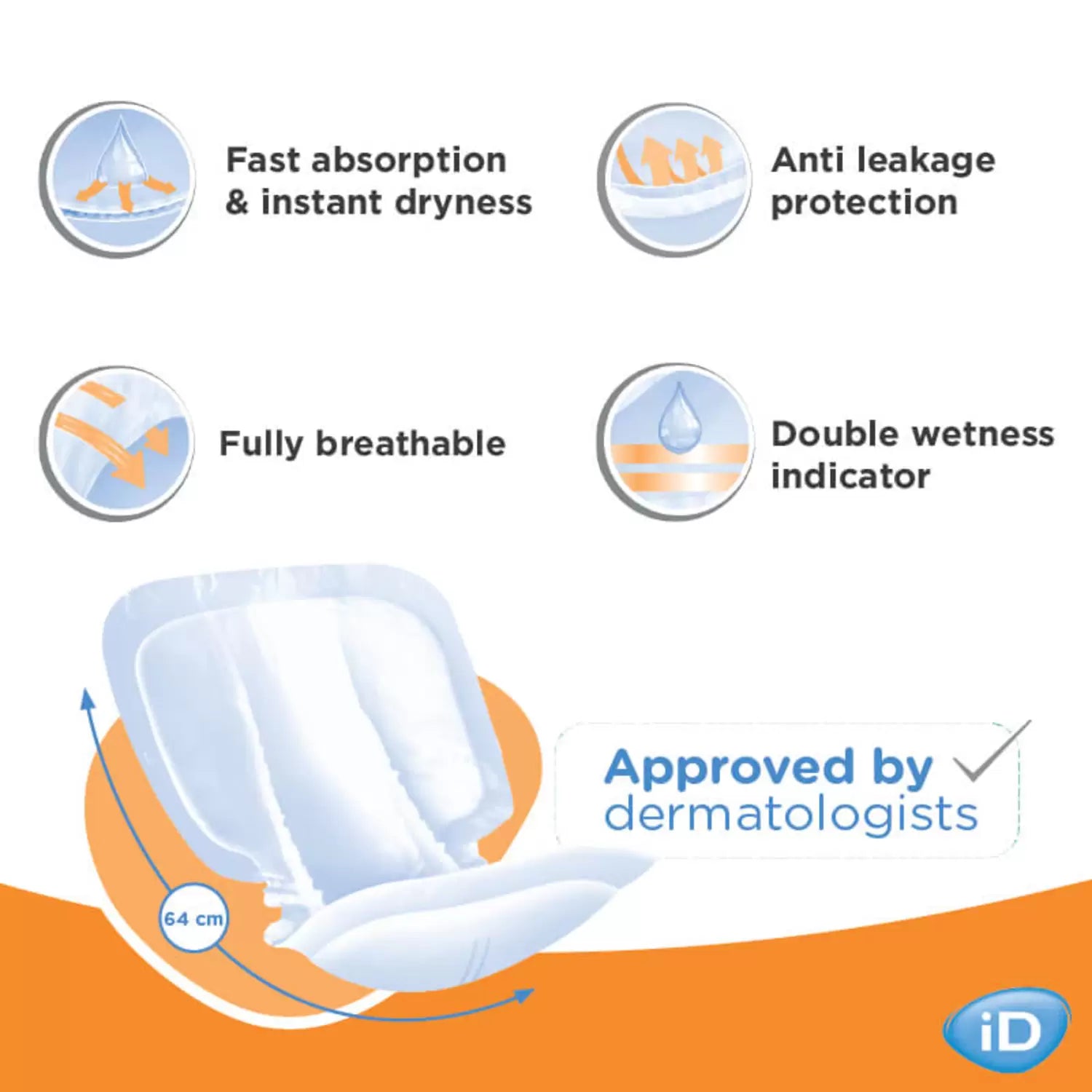 - Wetness indicator identify when a pad needs to be changed.