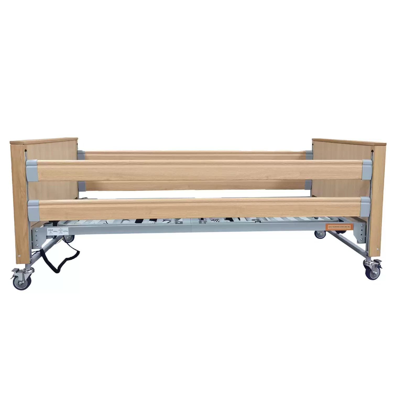 The high-quality wooden size rails with metal pins (can be removed if required), otherwise are collapsable below the mattress level. They extend higher to achieve a safe mattress depth in accordance with entrapment regulations, giving comfort and reassurance for user and care staff.
