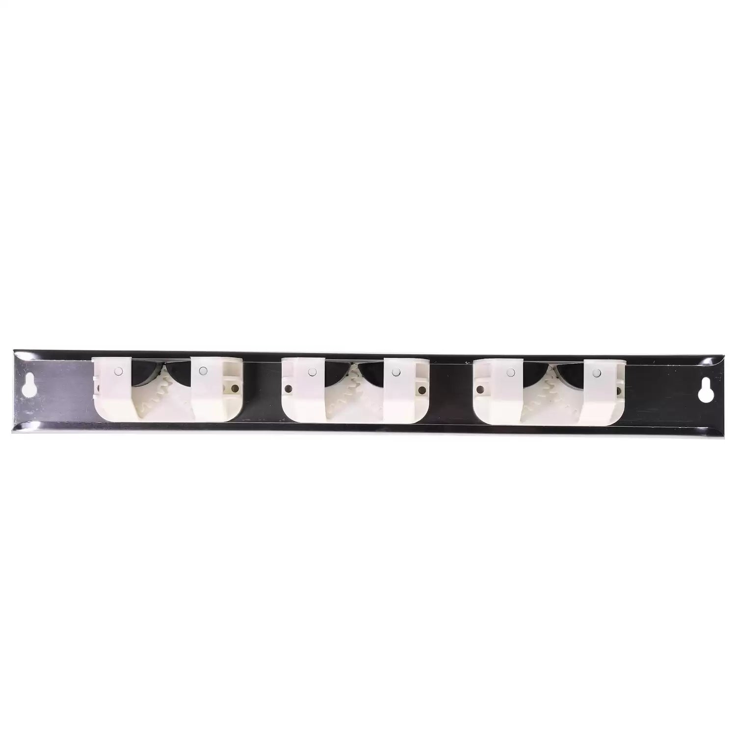 This high quality wall mountable mop and broom holder 3 slot is the perfect space saving storage item for your mop handles. This wall tidy consists of 3 sturdy hangers, designed to fit handles from 9-35mm diameter. Each hanger has a push / grip design to securely hold the handles in place.