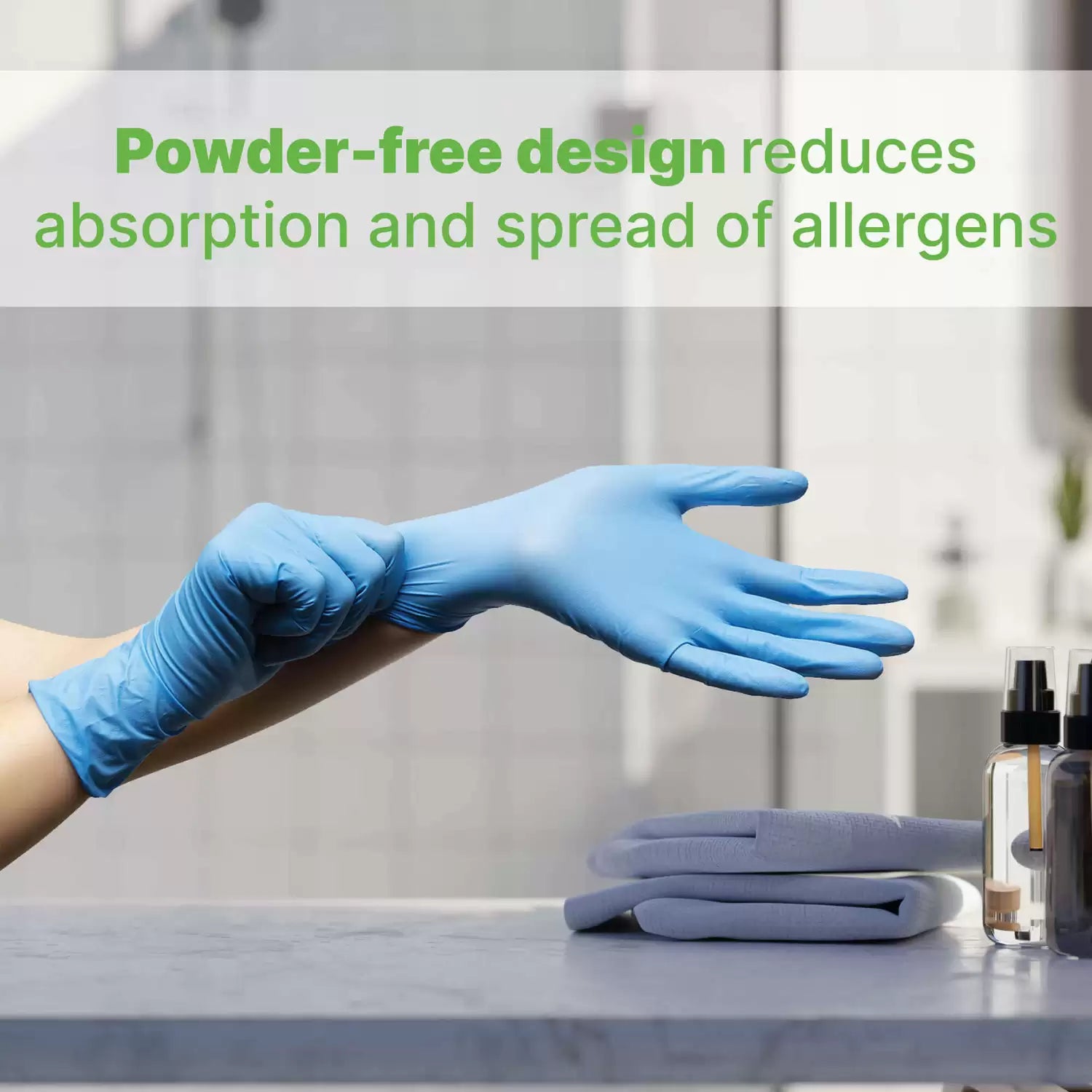 - Powder-free design reduces the absorption and spread of environmental allergens