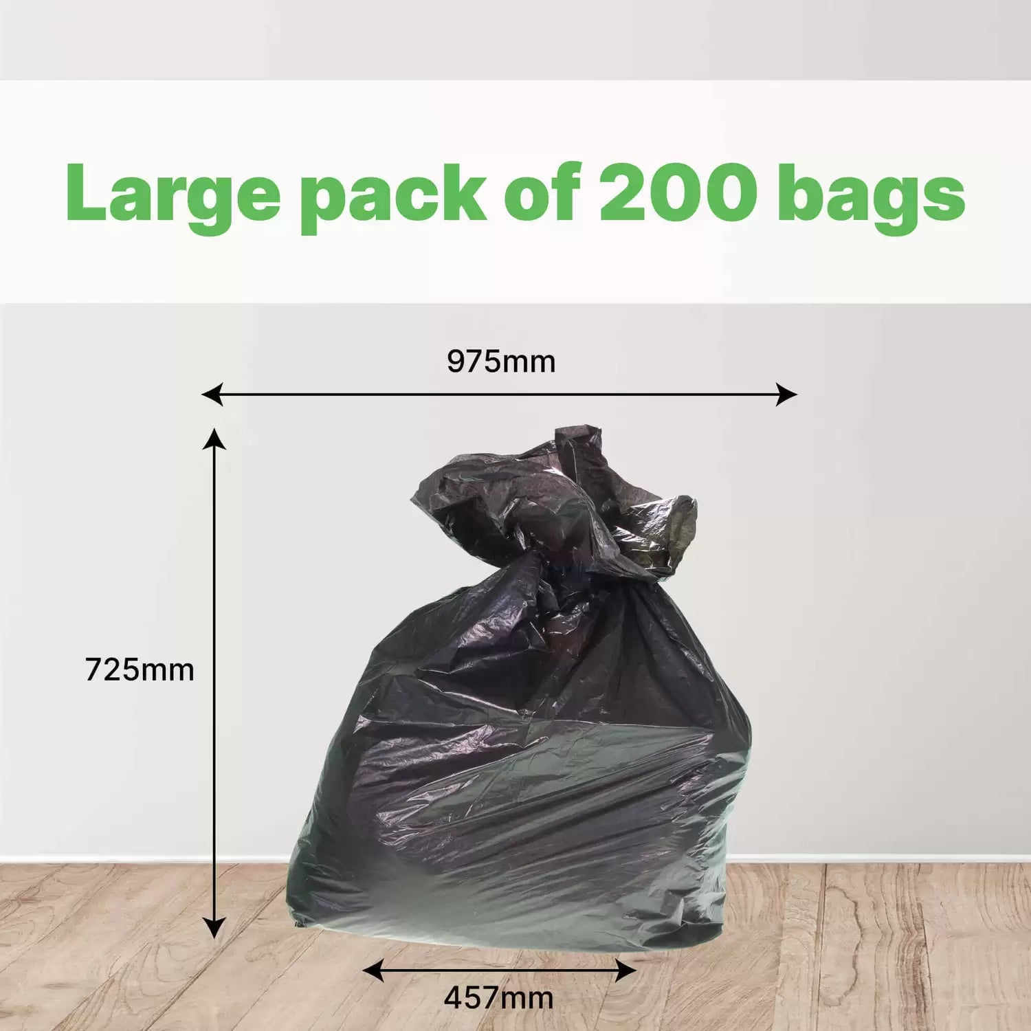Our 200 pack of Strong Black Bin Bags is great for professional use in care homes, schools and office. This refuse sack is designed to carry heavier waste, reducing splits and spills. They are packed in flat packed blocks of 50, great for storing in your cleaning cupboard.