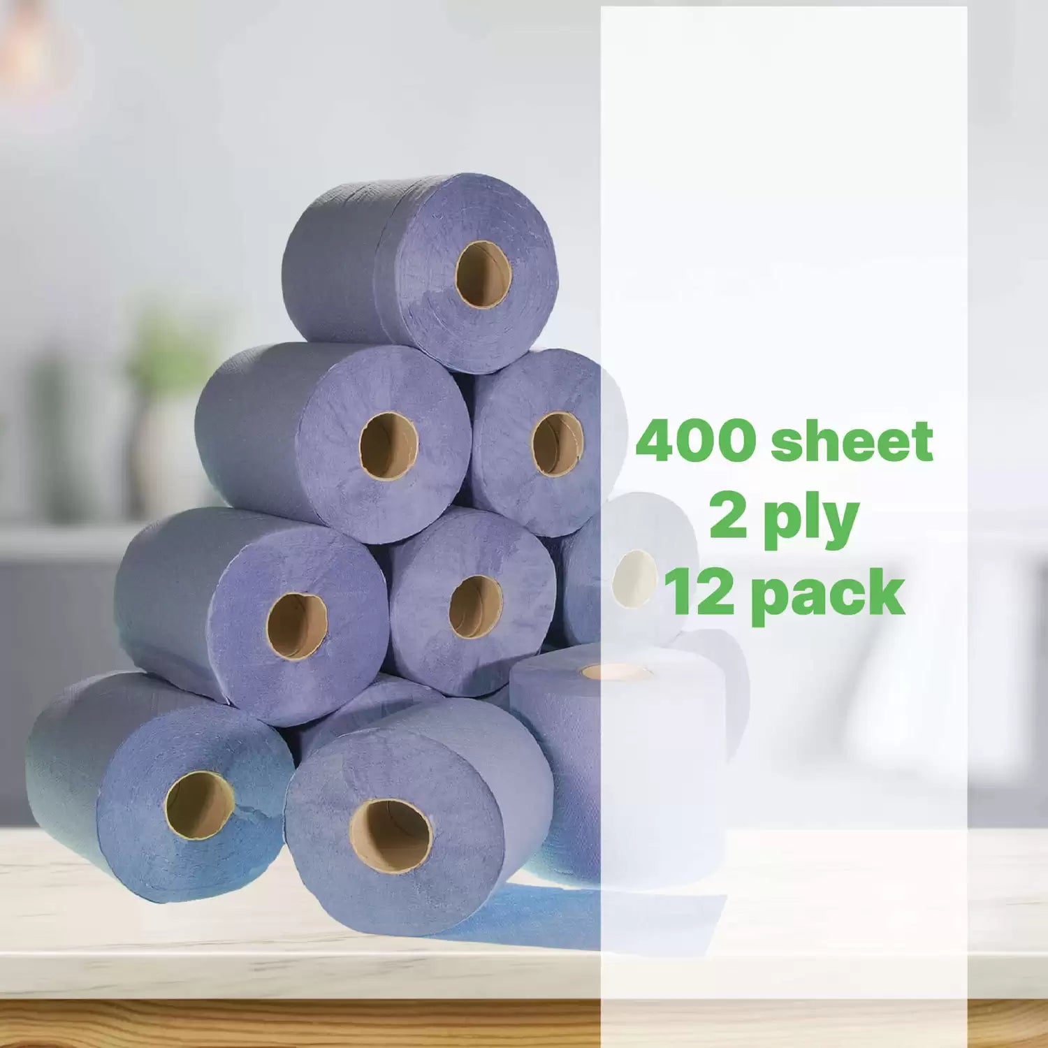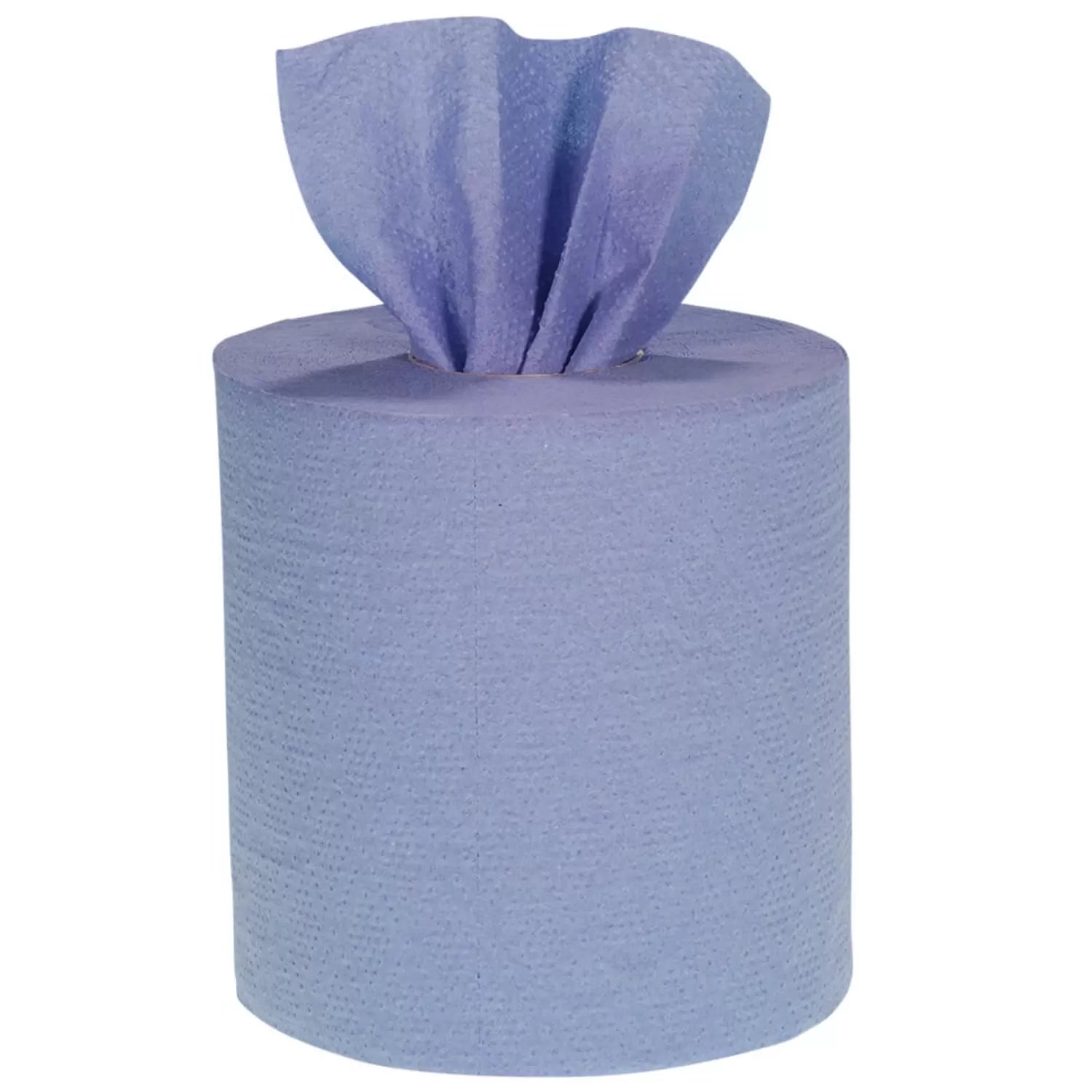 Our centrefeed Blue Roll from own brand Soclean is supplied in a large pack of 12, perfect for wiping up spills, drying hands and wiping surfaces in busy kitchens, nurseries and care homes. The premium laminated embossed finish provides excellent strength and absorption. The blue paper is 100% recycled and is supplied by a CHSA approved factory.