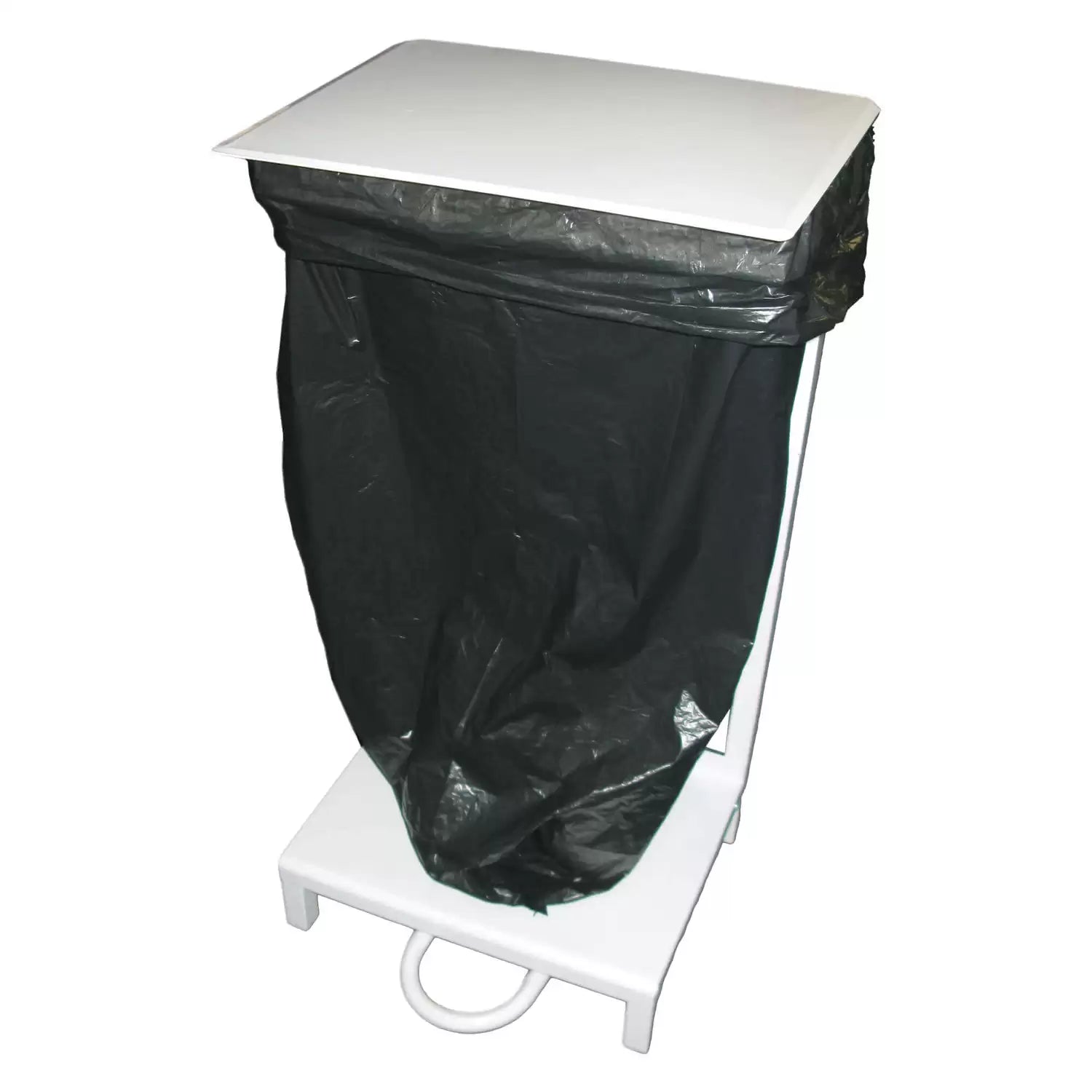 A compact and slim alternative to traditional bins, our Soclean Free Standing Sack Holder is a hygienic choice for kitchens. Removing the available surface area of a traditional bin that could become contaminated during a working day, this durable holder is compatible with a wide range of refuse sack options. The simple frame can be easily disinfected and sanitised along with your existing routine while the easy-to-remove bag system lends itself to high traffic environments such as large catering services. Four durable legs hold the sack holder securely in place, especially while changing the bins and the entire unit can be placed against a wall for compact storage. Finally, for hygienic purposes, the supplied lid is lifted using the foot pedal therefore eliminating the need for contamination on your hands.