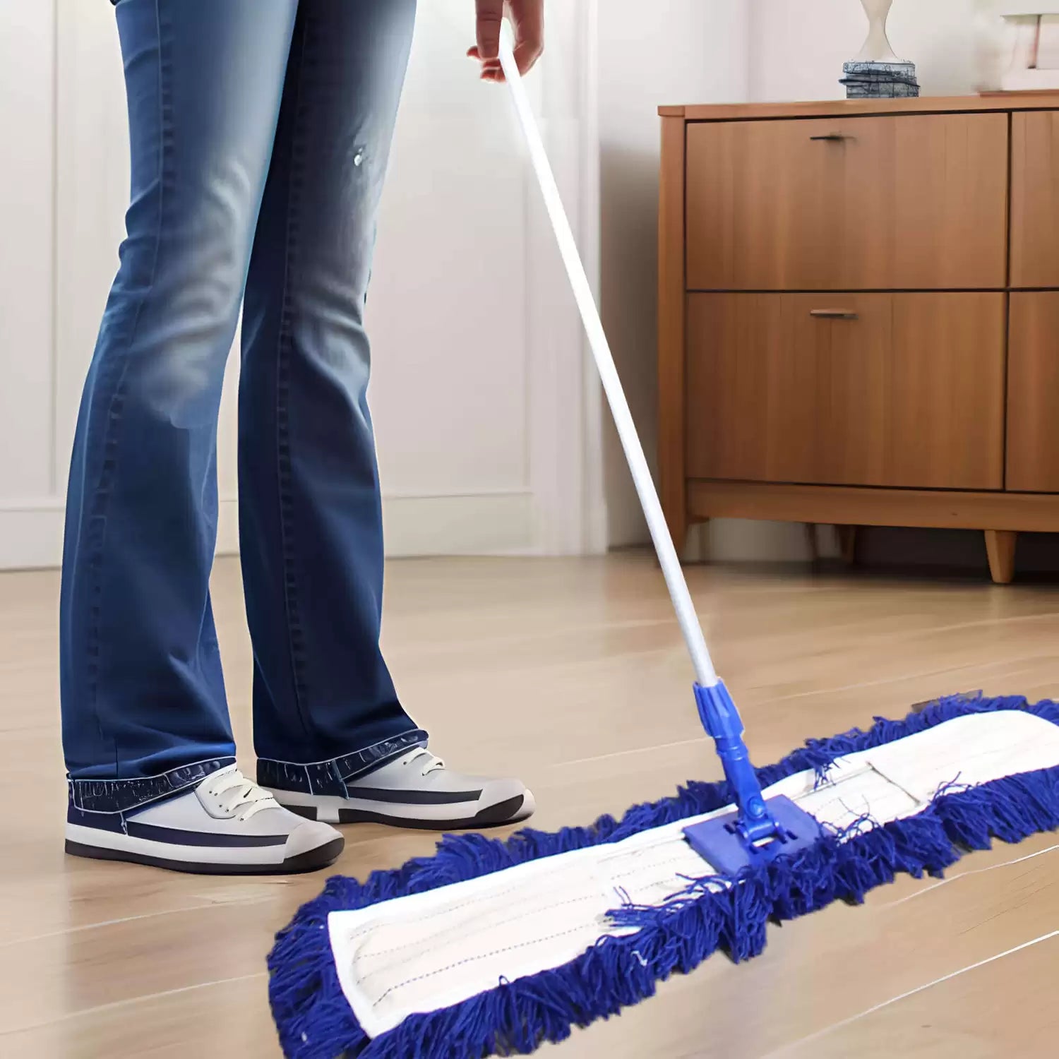 This Sweeper Mop from Soclean is perfect for use on large hard floor areas. The large surface area of the mop head picks up dust with ease. The dust busting head can be removed from the frame head for washing, ensuring you can reuse it multiple times. The handle with a blue grip tip is lightweight, yet durable, making it easy to use for large areas.
