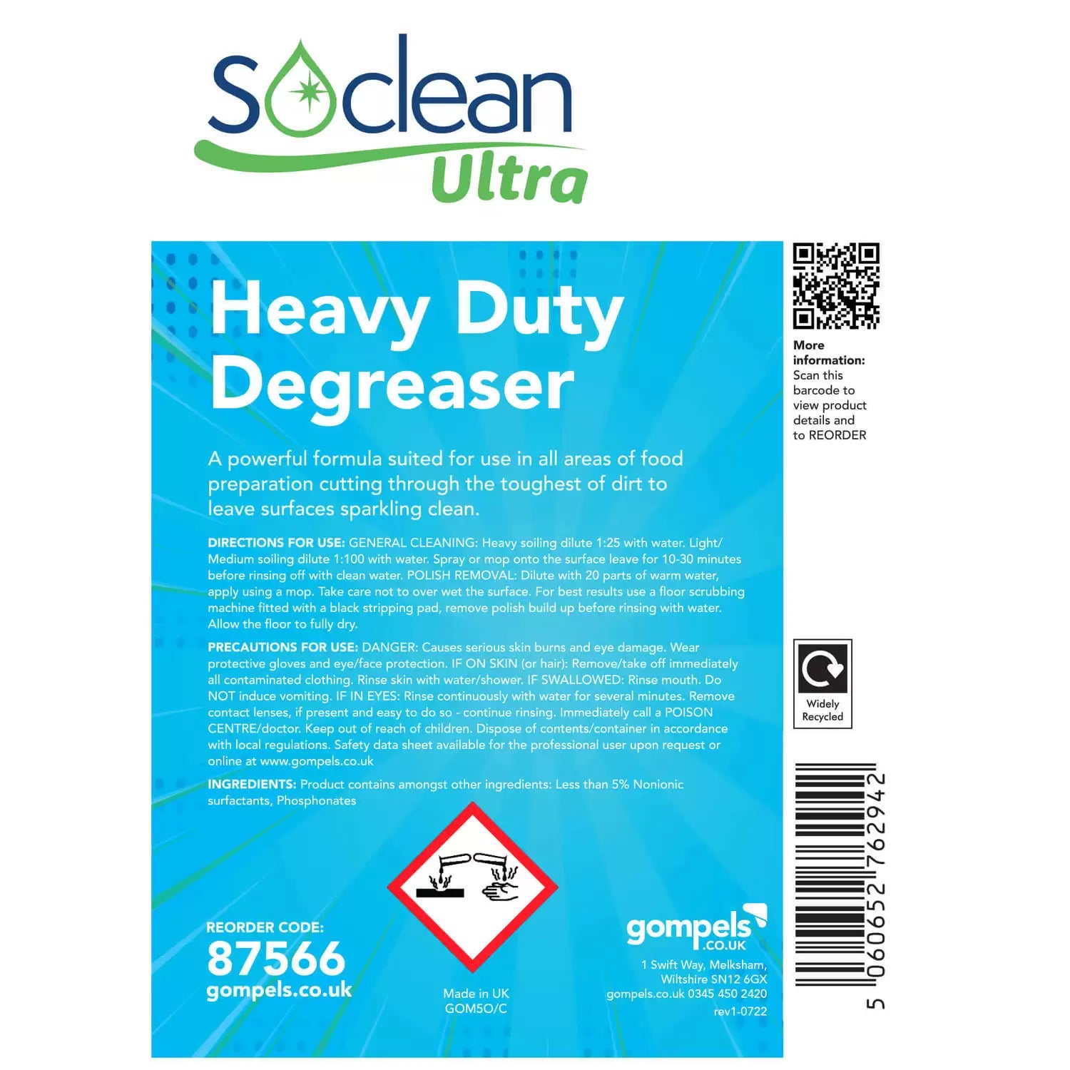 Our Soclean Heavy Duty Degreaser 5 Litre 2 Pack is a highly effective hard surface cleaner, great for cleaning stubborn grease and oil marks from most kitchen surfaces. It is effective in all water conditions and is unperfumed and non tainting. It is formulated using an optimal blend of alkalis, sequestrants and non-ionic surfactants, providing it with a powerful degreasing action. For best results leave on surface for around 10 minutes. It is also excellent for removing heavy build up of solvent and emulsion based floor polishes.