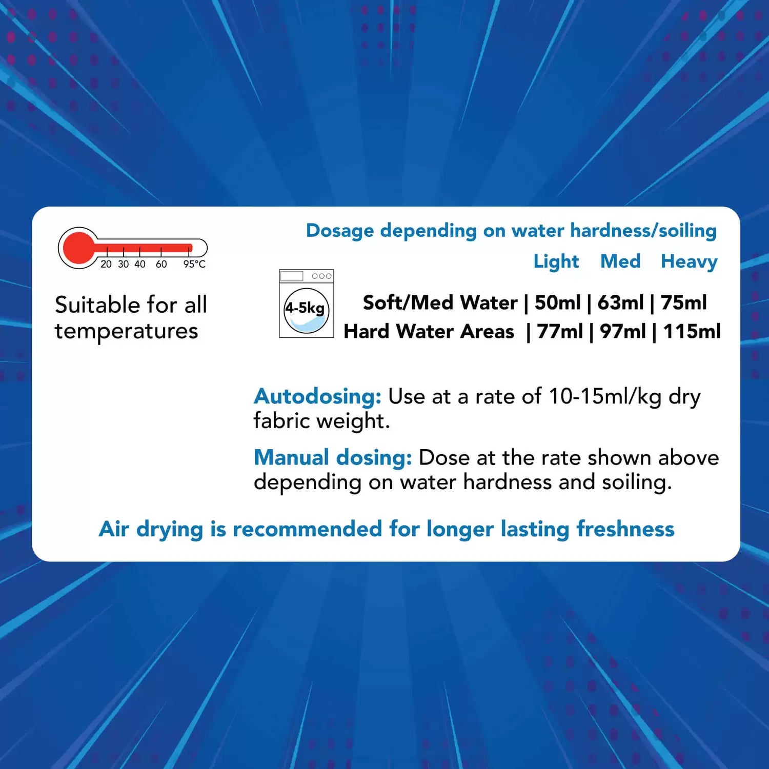 For auto dosing machines use at a rate of 10-15ml/kg dry fabric weight