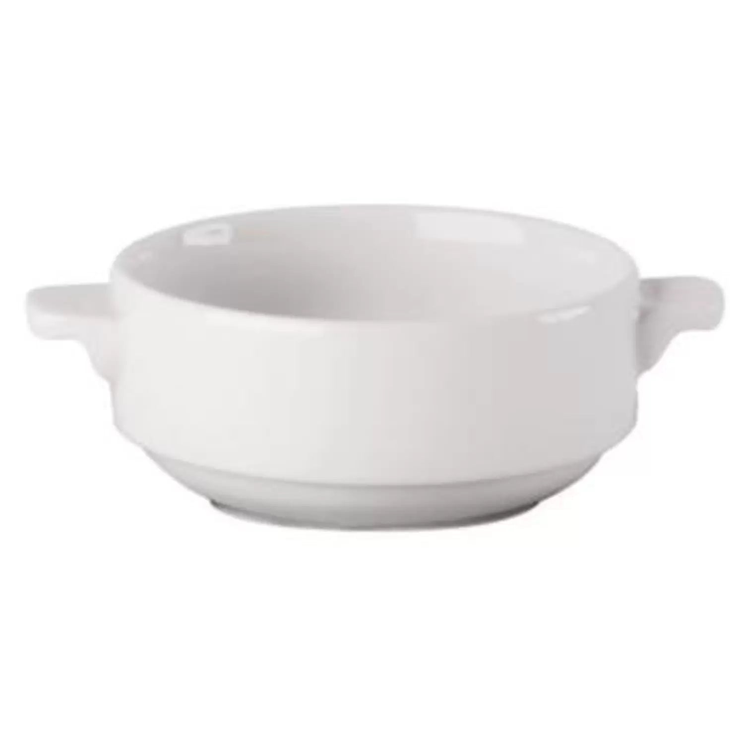 Perfect for busy catering environments, this Stacking Soup Cup Set offers durability over extended wear. Each one has been manufactured from a hard wearing vitrified china that withstands continual washing and maintenance. The deep 10oz bowl has been designed to hold enough soup for a single service with two easy-grip handles for quick consumption. Their universal colour blends in with your existing kitchen utensils and makes them ideal for larger mealtimes any catering environments.
