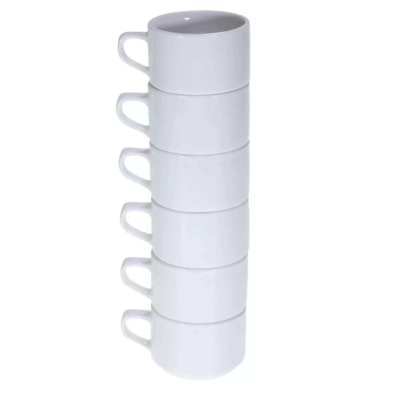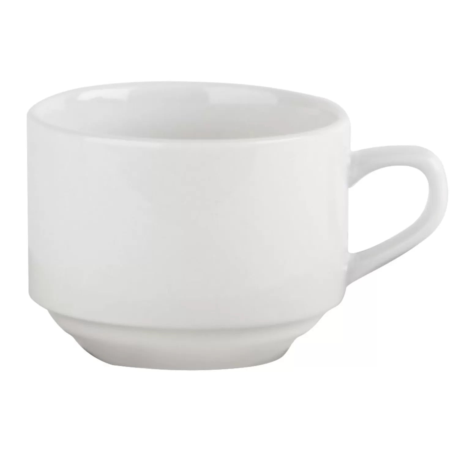 Perfect for everyday use, our Stacking Tea Cup 6 Pack is perfect for busy offices or residential homes. Each one has been manufactured from a vitrified china and presented in a versatile white colour to blend with your existing catering resources. Touch and functional, these practical cups can be distributed throughout your residents or guests with a suitable 7oz capacity for the most refreshing cup of tea. The stacking design reduces the free space needed to store this chinaware and pairs well with the other items in our Tableware collection.