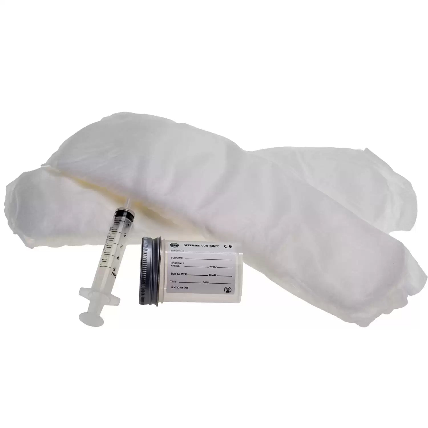 - Simple and easy to use - wait until the pad is soaked, and use the sterile syringe to fill the sample bottle