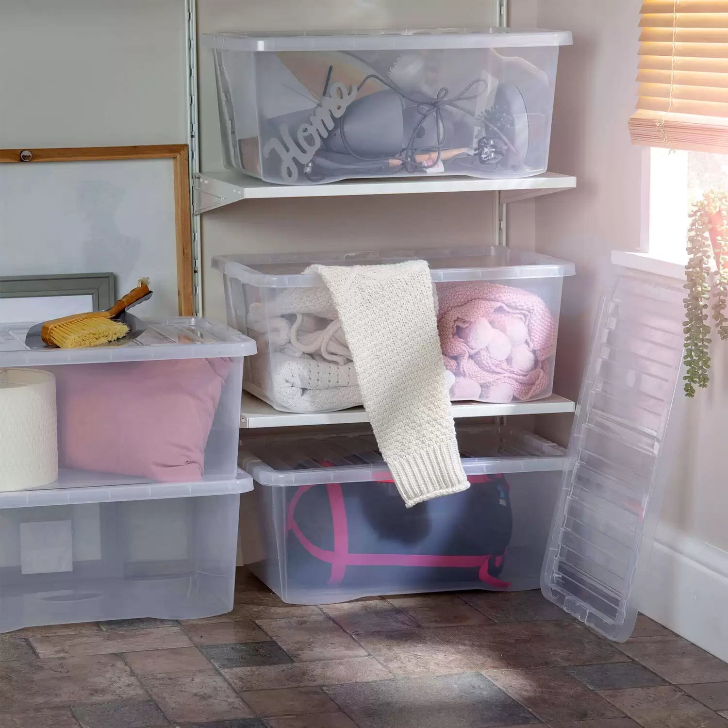 - Secure lids keep items safe and dust-free.