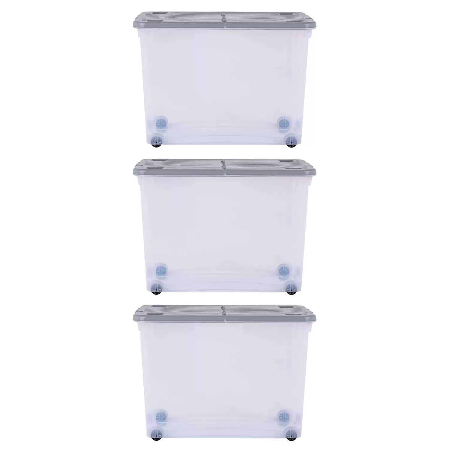The Wham Storage Box with Wheels and Folding Lid is your ultimate storage solution for nurseries, schools, healthcare practices, and care homes. With a generous 80L capacity and a sleek clear body and grey lid design, these boxes make organisation a breeze. Effortlessly roll them wherever you need, thanks to smooth-rolling wheels, and enjoy quick access with the convenient folding lid. The clear design lets you spot what's inside at a glance, saving time and hassle. Perfect for toys, educational materials, medical supplies, or personal items, these versatile boxes ensure a tidy, efficient, and stylish environment. Say goodbye to clutter and hello to simplicity!