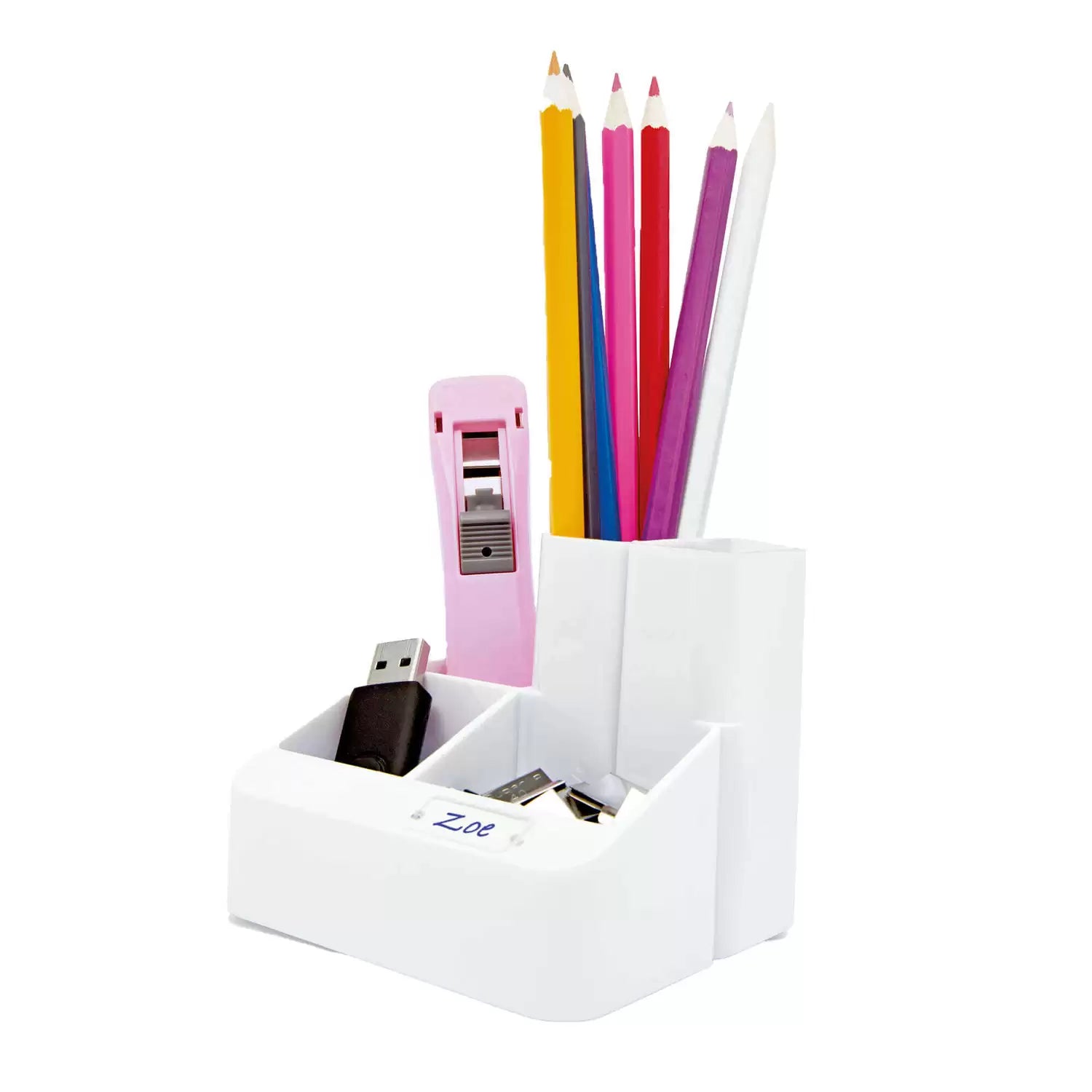 This White Desk Tidy Organiser is a stylish and practical solution to declutter your workspace. This sleek and minimalistic organiser is designed to bring order to your desk, providing dedicated compartments for pens, pencils, and other essential items. Its clean white finish effortlessly complements any office or home decor, adding a touch of elegance to your surroundings. The sturdy construction ensures durability, while the well-thought-out design keeps everything in its place, promoting a tidy and productive work environment.