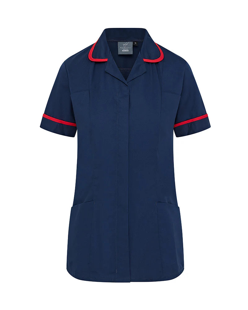 Classic style. Trusted performance. This best-selling nurse tunic features a smart rounded collar, concealed zip front, and contrast trims — combining sharp looks with everyday practicality. Two chest pockets, two roomy hip pockets, action back pleats, and a rear back vent offer comfort, storage, and freedom of movement. Durable fabric built to last shift after shift
