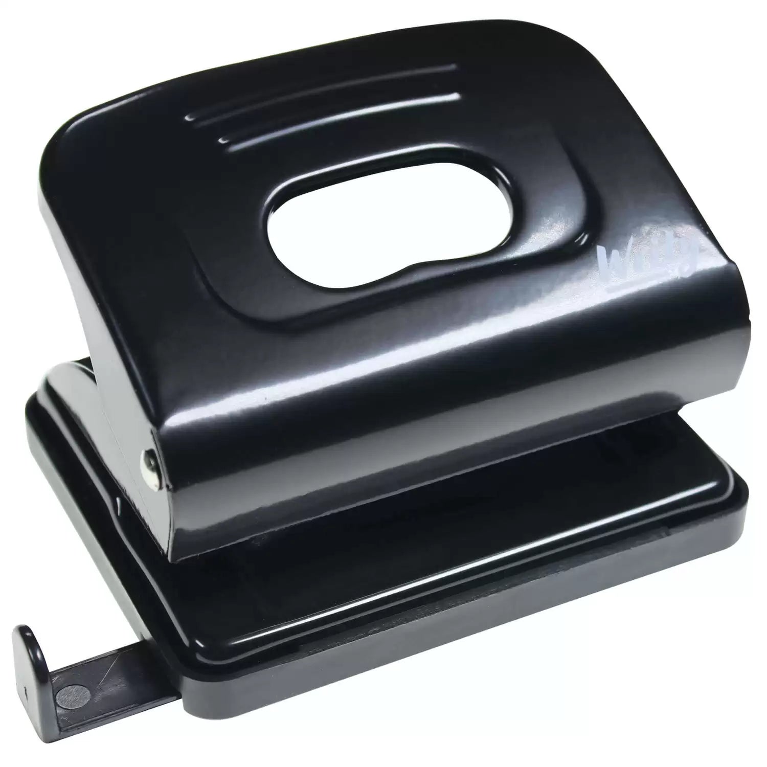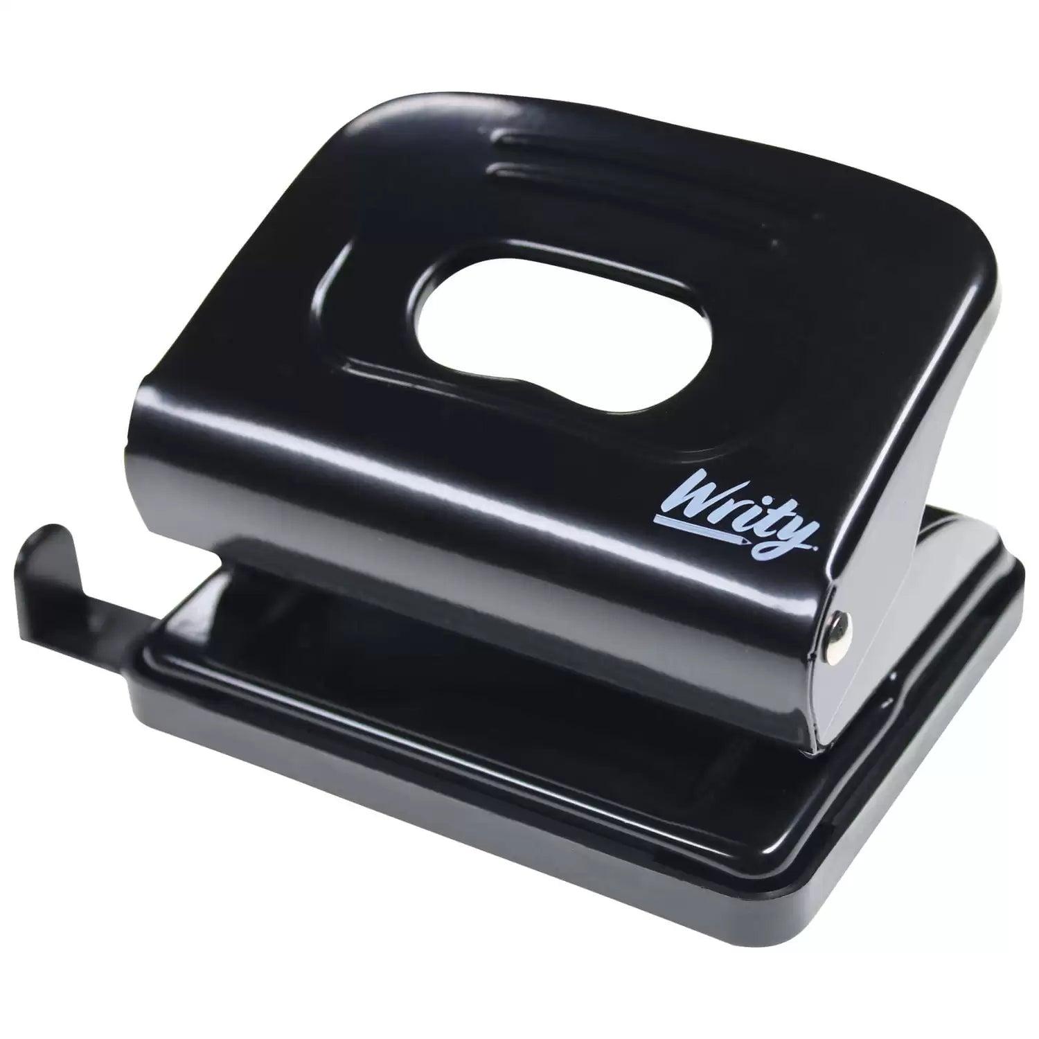 A vital piece of kit in any office or educational environment, our Writy Hole Punch Medium Duty Black is an economical choice. Manufactured from a hard wearing and smooth black metal, this durable machine can effectively puncture two evenly spaced holes into up to 16 pieces of paper at one go. A measuring guide has been imprinted across the body, ensuring your holes are placed exactly centre while a handle lock down mechanism ensures safe storage. The curved design of the hole punch with ribbed detailing provides a comfortable resting place for your hands with anti-slip properties to avoid injury.