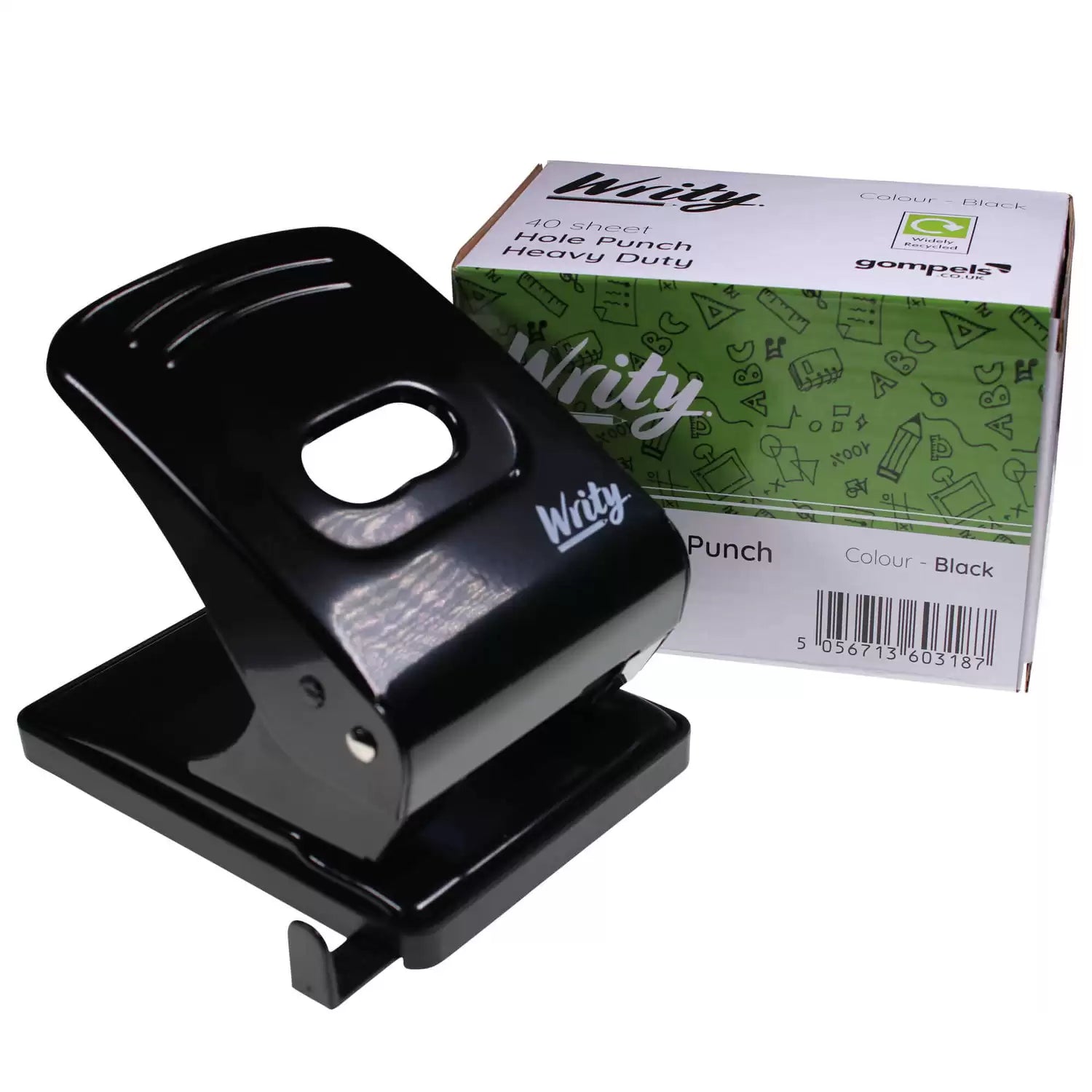 Ideal for punching through multiple sheets of paper, our Writy Heavy Duty Hole Punch comes with a black plastic punch tray, which is easy to open and empty. It can punch a maximum of 40 sheets at a time, so will speed up preparations for the classroom and meetings.