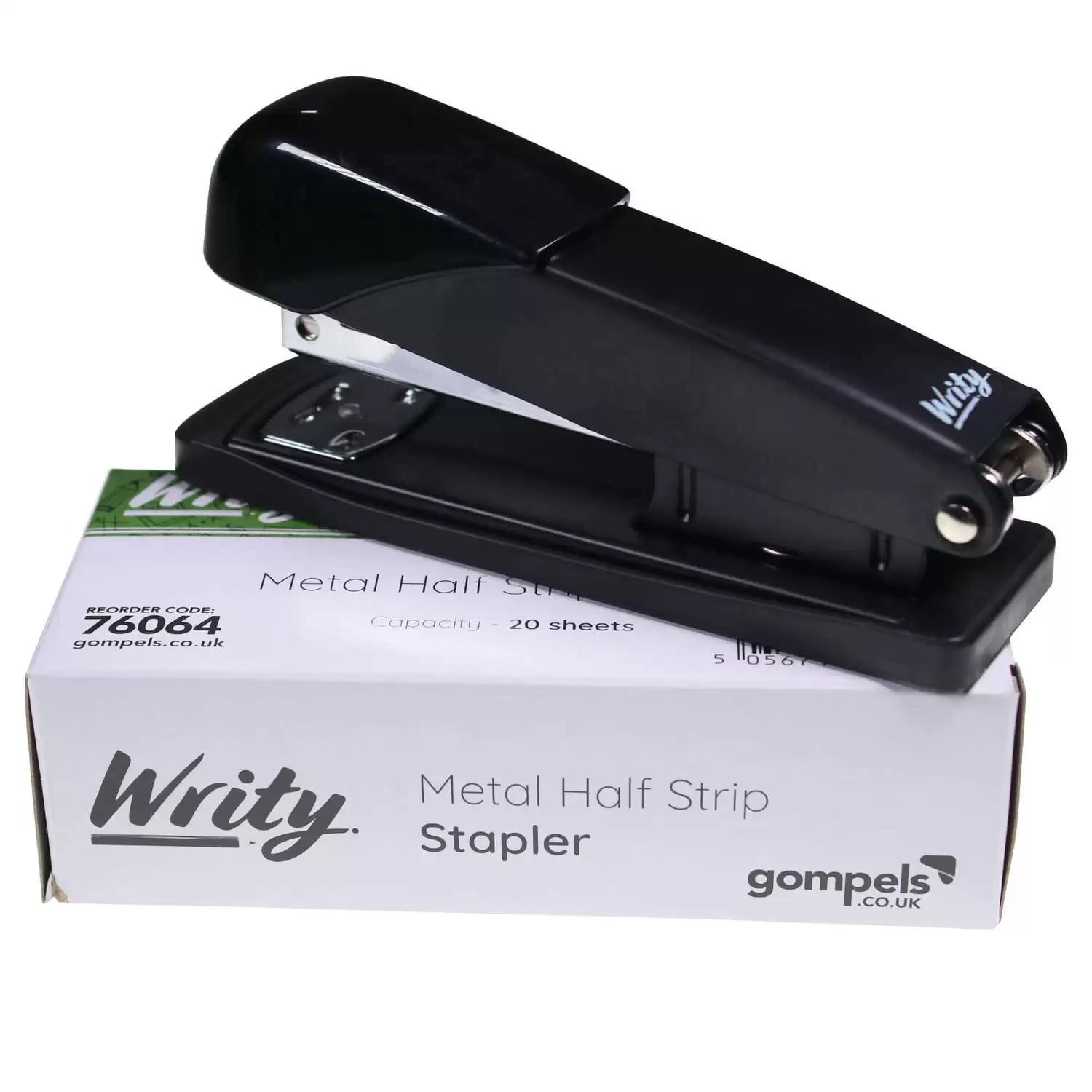 An essential staple in any work environment, our Metal Half Strip Stapler sits easily on busy desks with its light weight and compact design. Manufactured to hold half a strip of staples and with a stapling capacity of up to 20 sheets at one given time, this all black stapler is both versatile and highly functional. Sturdy in design to last the test of time, this stapler comes with a full rubber base which provides exceptional stability while you organise your piles of paperwork. Simply open up the top and place your 26/6 staples within to begin your journey to office organisation.